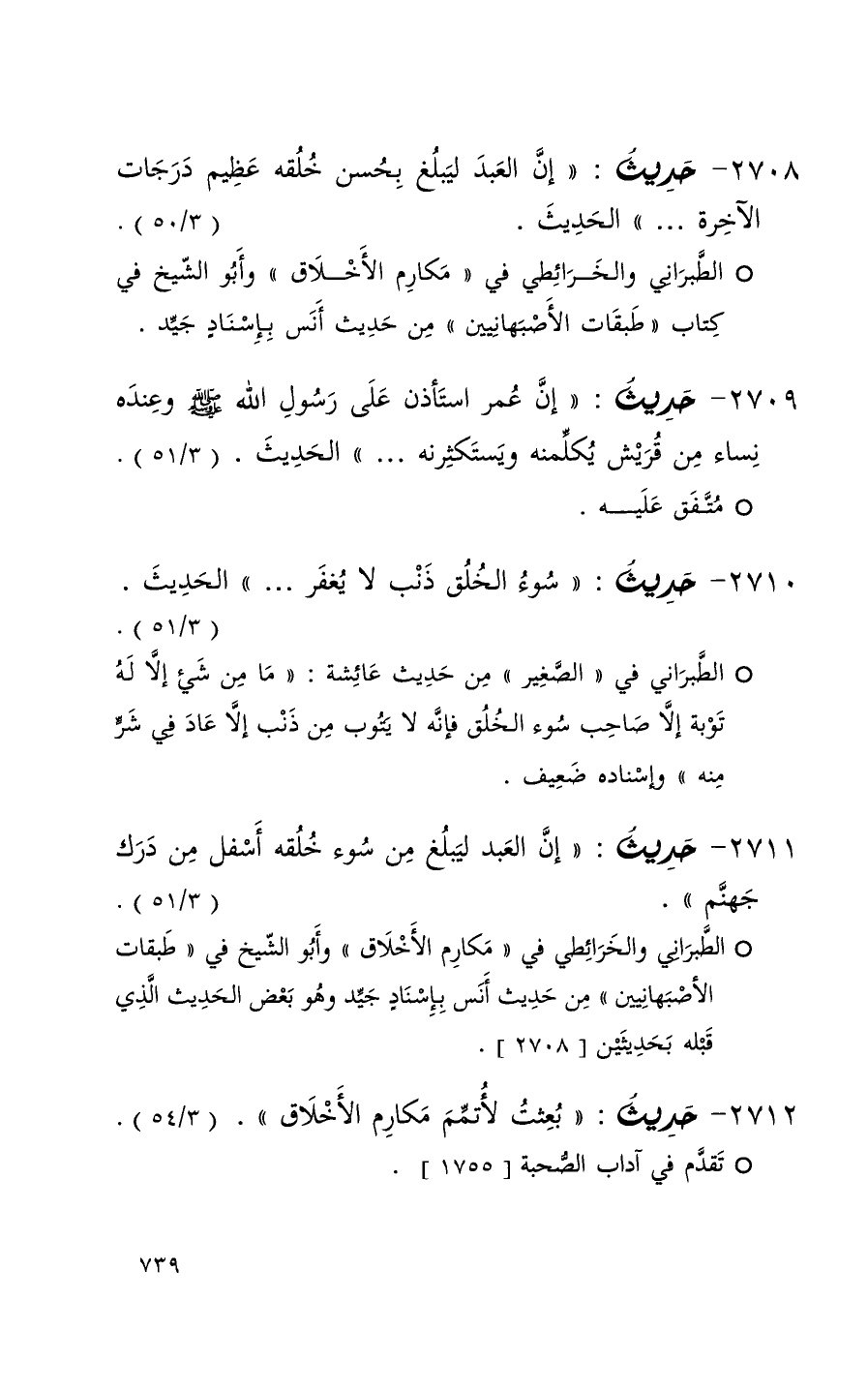 2711 حديث ( إن العبد ليبلغ من سوء خلقه أسفل من درك جهنم ) ( 3 / 51 ) + الطبراني والخرائطي في مكارم الأخلاق وأبو الشيخ في طبقات الأصبهانيين من حديث أنس جيد وهو بعض الحديث الذي قبله بحديثين 2708 +