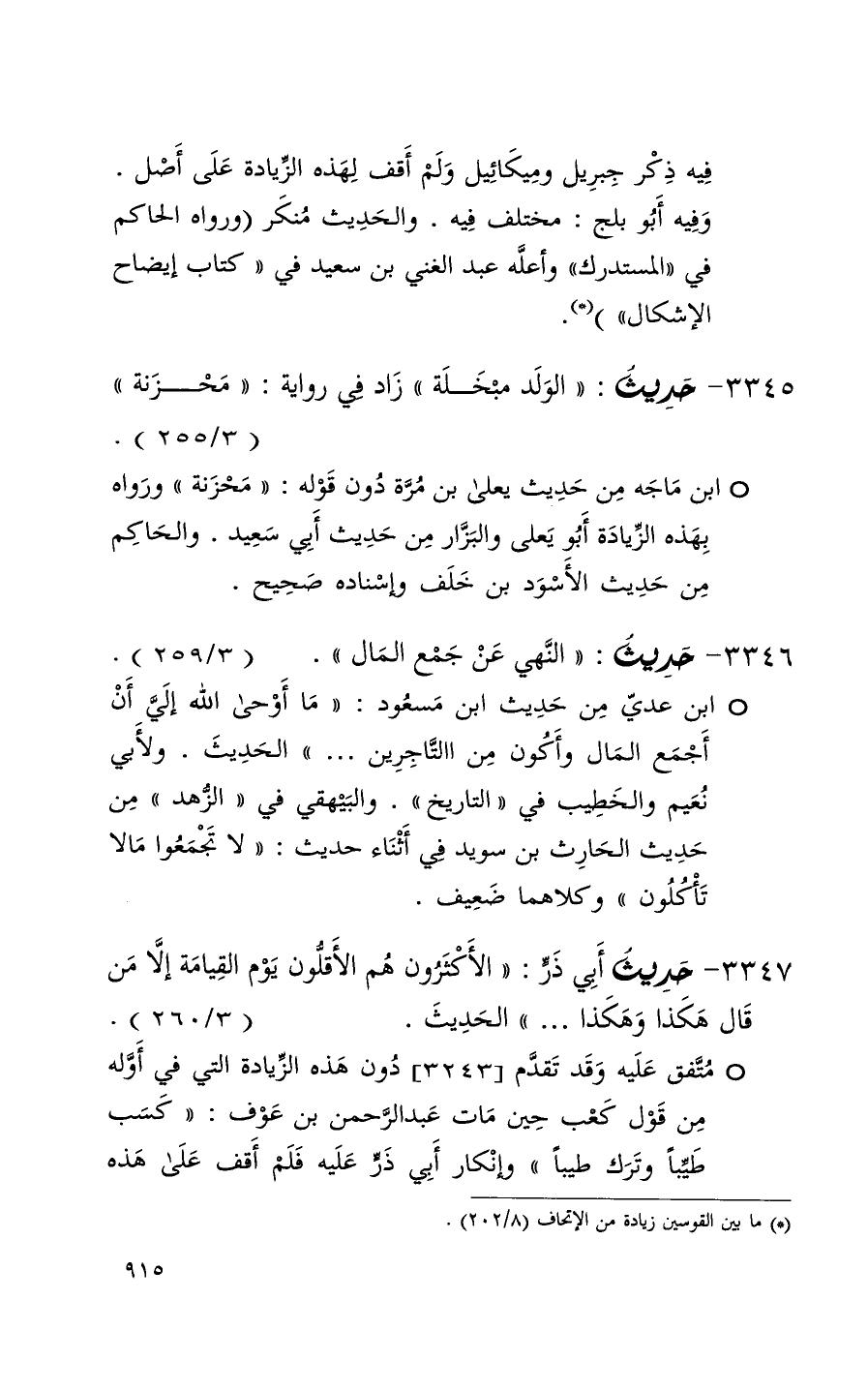 3347 حديث أبي ذر ( الأكثرون هم الأقلون يوم القيامة إلا من قال هكذا وهكذا . . . ) الحديث ( 3 / 260 ) + متفق عليه وقد تقدم 3243 دون هذه الزيادة التي في أوله من قول كعب حين مات عبد الرحمن بن عوف ( كسب طيباً وترك طيباً ) وإنكار أبي ذر عليه فلم أقف على هذا