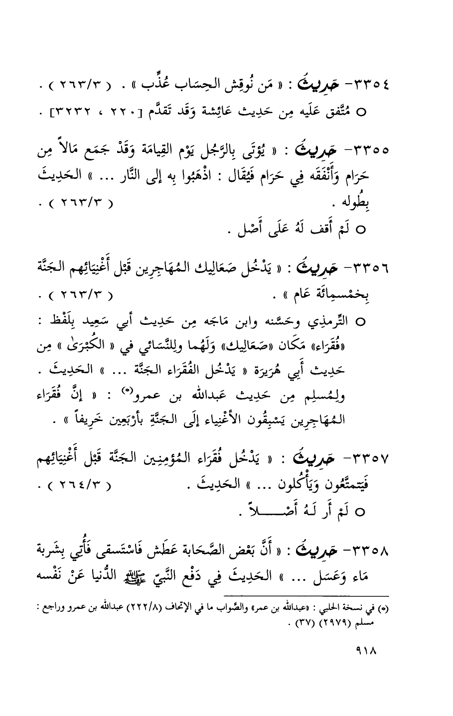 3354 حديث ( من نوقش الحساب عذب ) ( 3 / 263 ) (1)