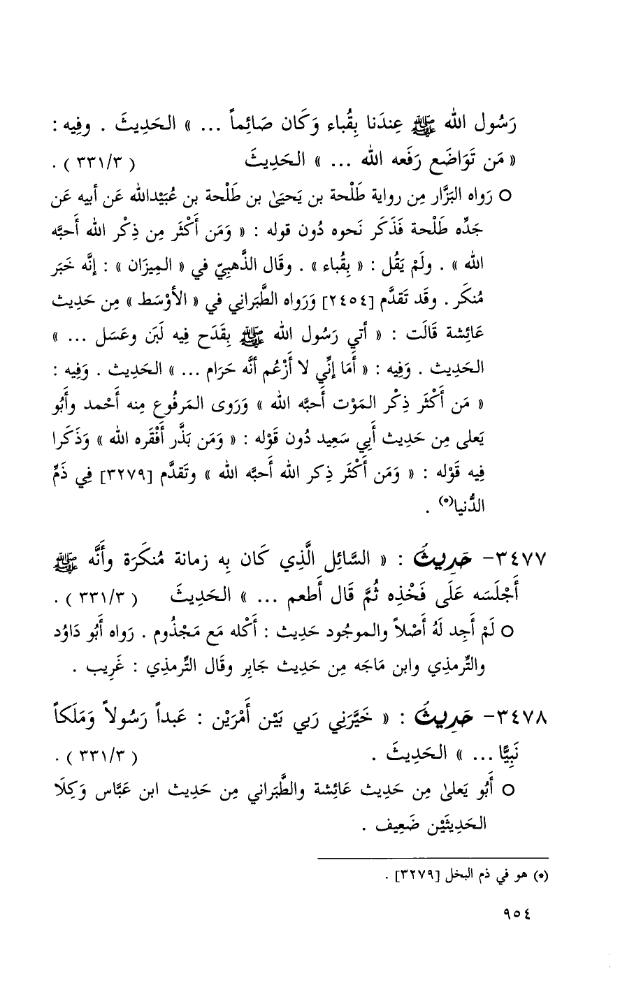 1- رواه البزار من رواية طلحة بن يحي بن طلحة بن عبيد الله عن أبيه عن جده طلحة فذكر نحوه دون قوله ( ومن أكثر من ذكر الله أحبه الله ) ولم يقل بقباء وقال الذهبي في الميزان إنه خبر منكر وقد تقدم 2454 ورواه الطبراني في الأوسط من حديث عائشة قالت ( أتي رسول الله بقدح فيه لبن وعسل . . . ) الحديث وفيه ( أما إني لا أزعم أنه حرام . . . ) الحديث وفيه ( من أكثر ذكر الموت أحبه الله ) وروى المرفوع منه أحمد وأبو يعلى من حديث أبي سعيد دون قوله ( ومن بذر أفقره الله ) وذكراً فيه قوله ( ومن أكثر ذكر الله أحبه الله ) وتقدم 3279 في ذم الدنيا