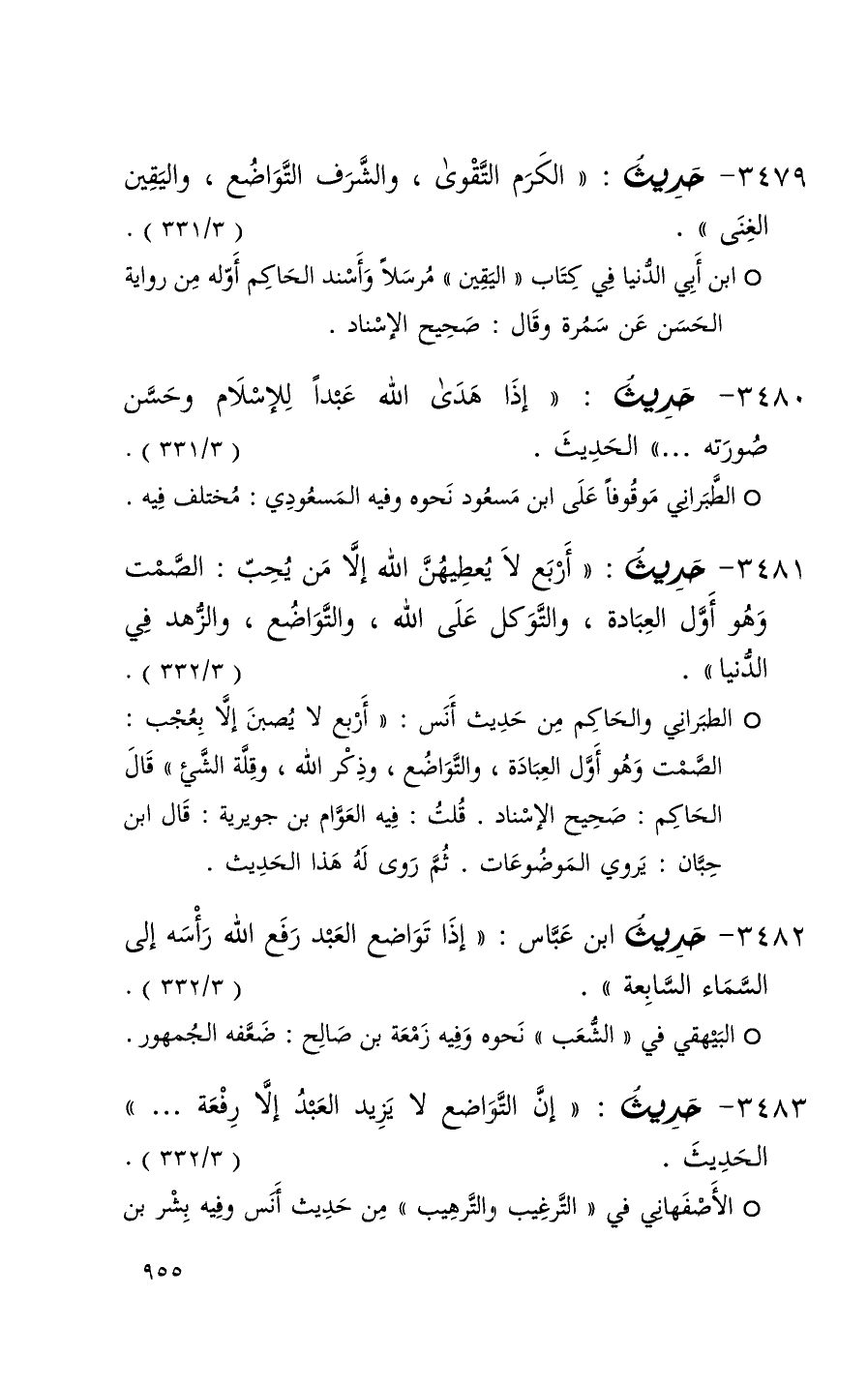 3479 حديث ( الكرم والتقوى والشرف والتواضع واليقين الغنى ) ( 3 / 331 ) (1)