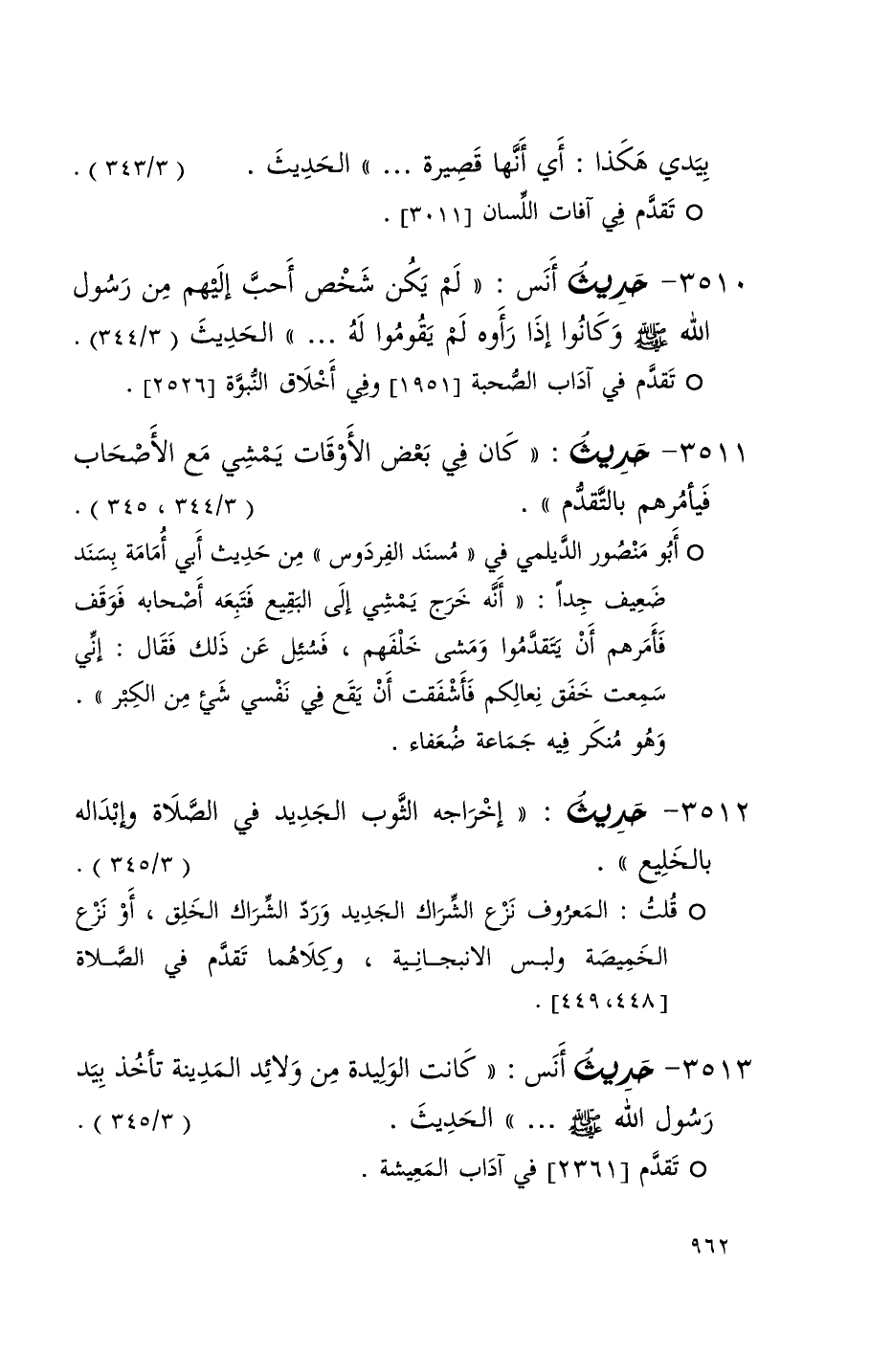 3513 حديث أنس ( كانت الوليدة من ولائد المدينة تأخذ بيد رسول الله ) الحديث ( 3 / 345 ) + تقدم 2361 في آداب المعيشة +