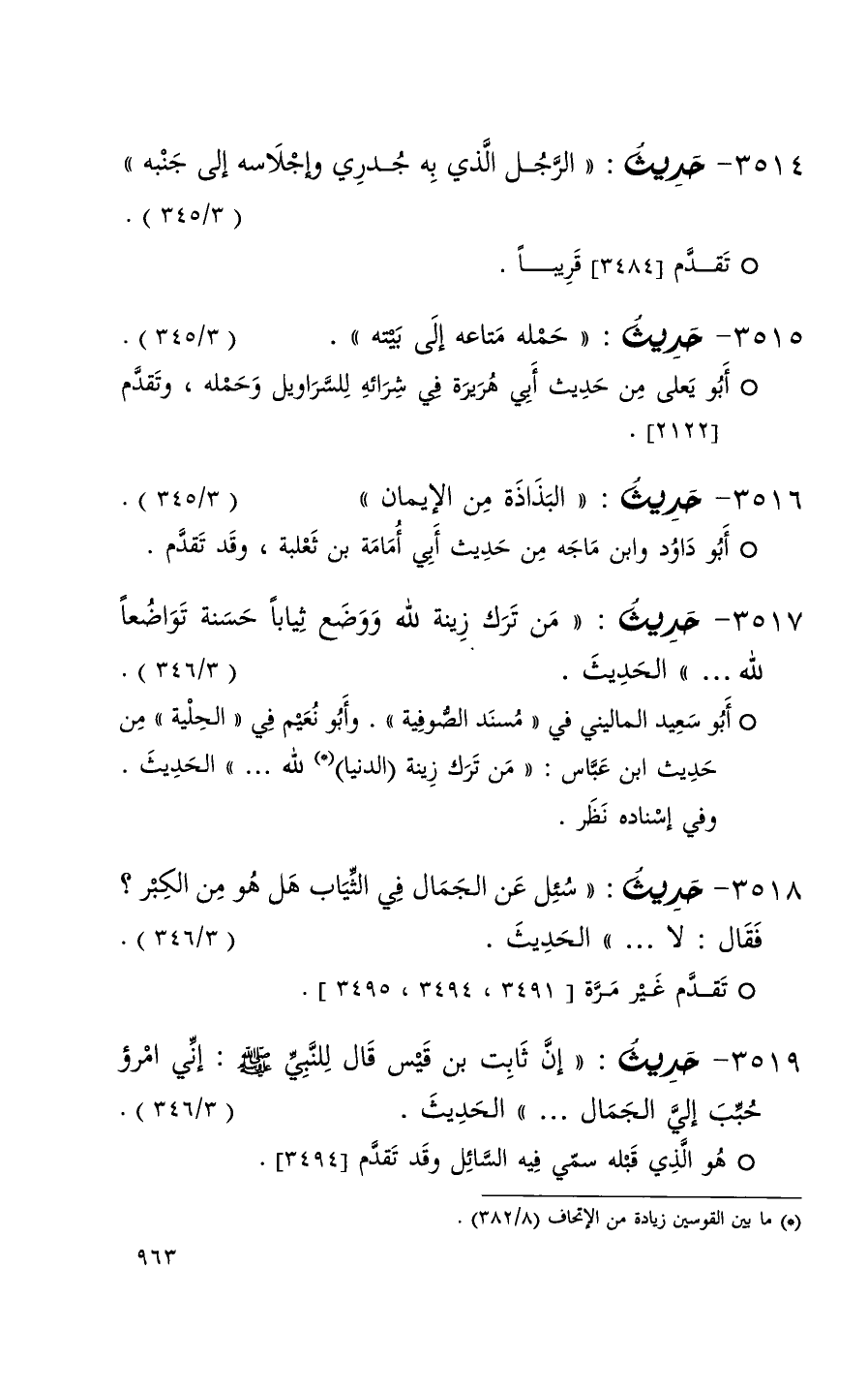3518 حديث ( سئل عن الجمال في الثياب هل هو من الكبر فقال لا . . . ) الحديث ( 3 / 346 + تقدم غير مرة 3491 ، 3494 ، 3495 +