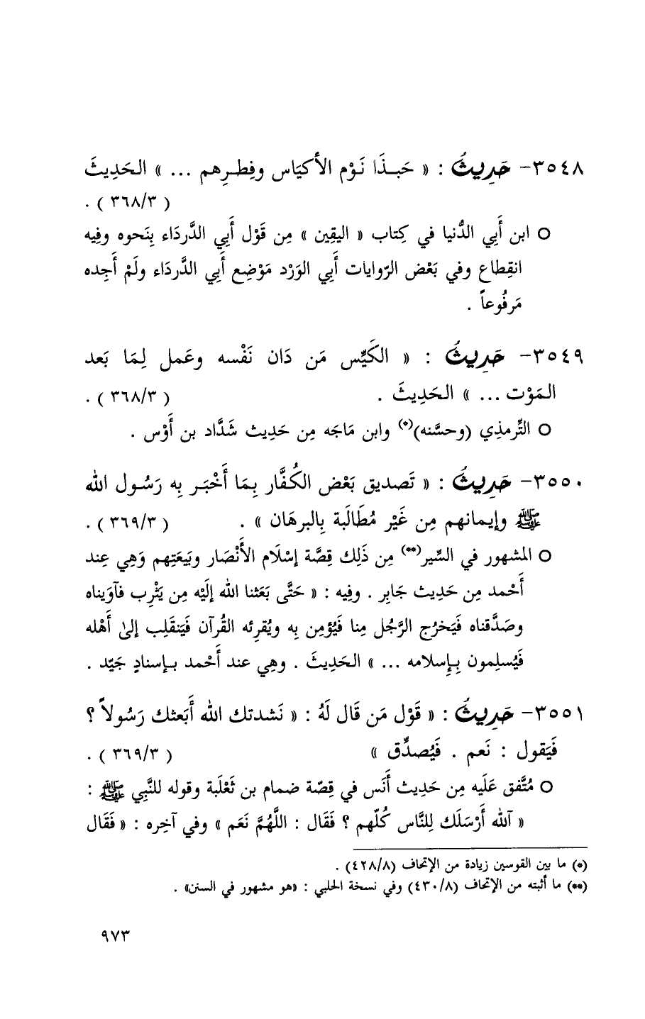 3548 حديث ( حبذا نوم الأكياس وفطرهم . . . ) الحديث ( 3 / 368 ) (1)