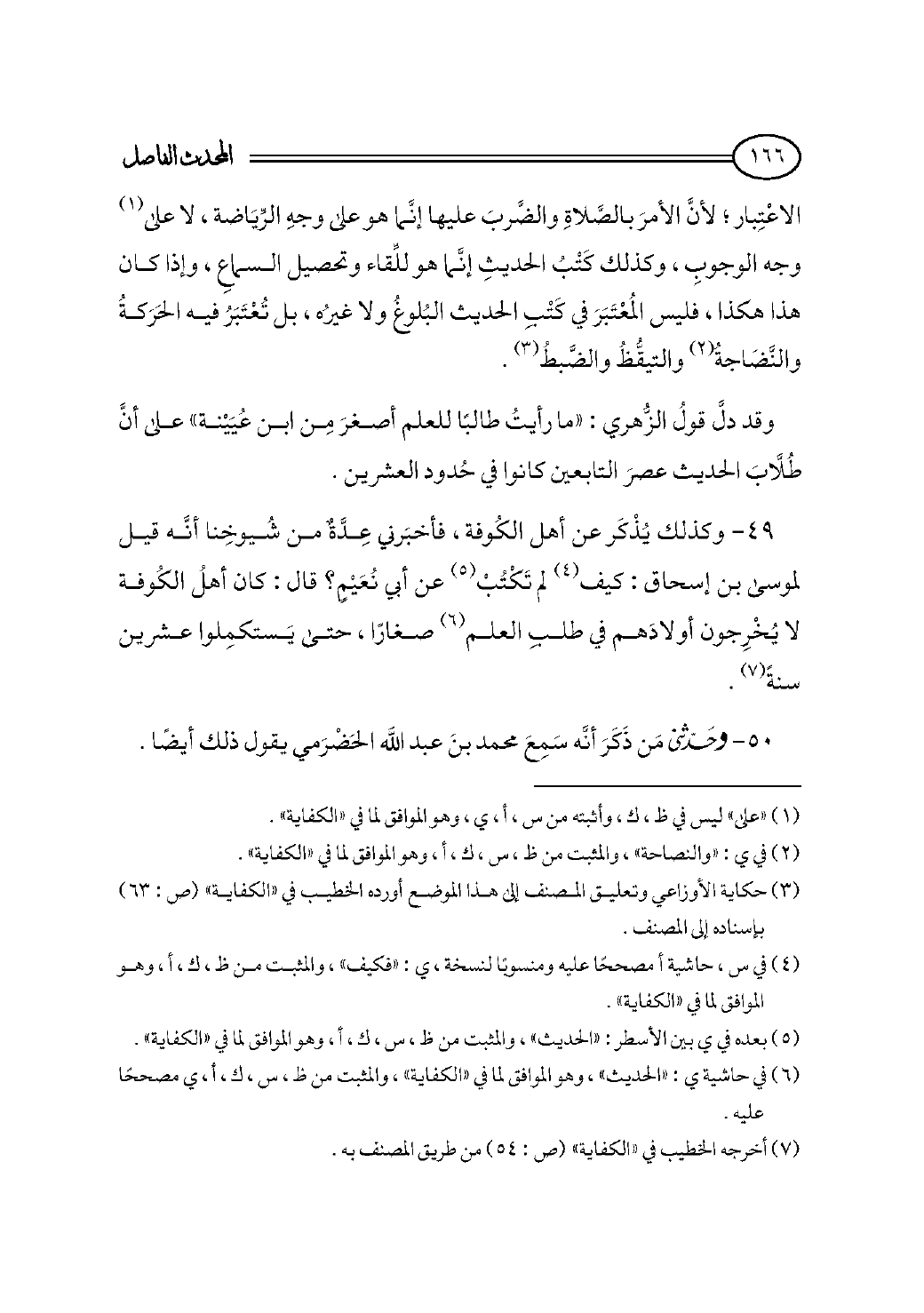 (¬٥) بعده في ي بين الأسطر: «الحديث»، والمثبت من ظ، س، ك، أ، وهو الموافق لما في «الكفاية».