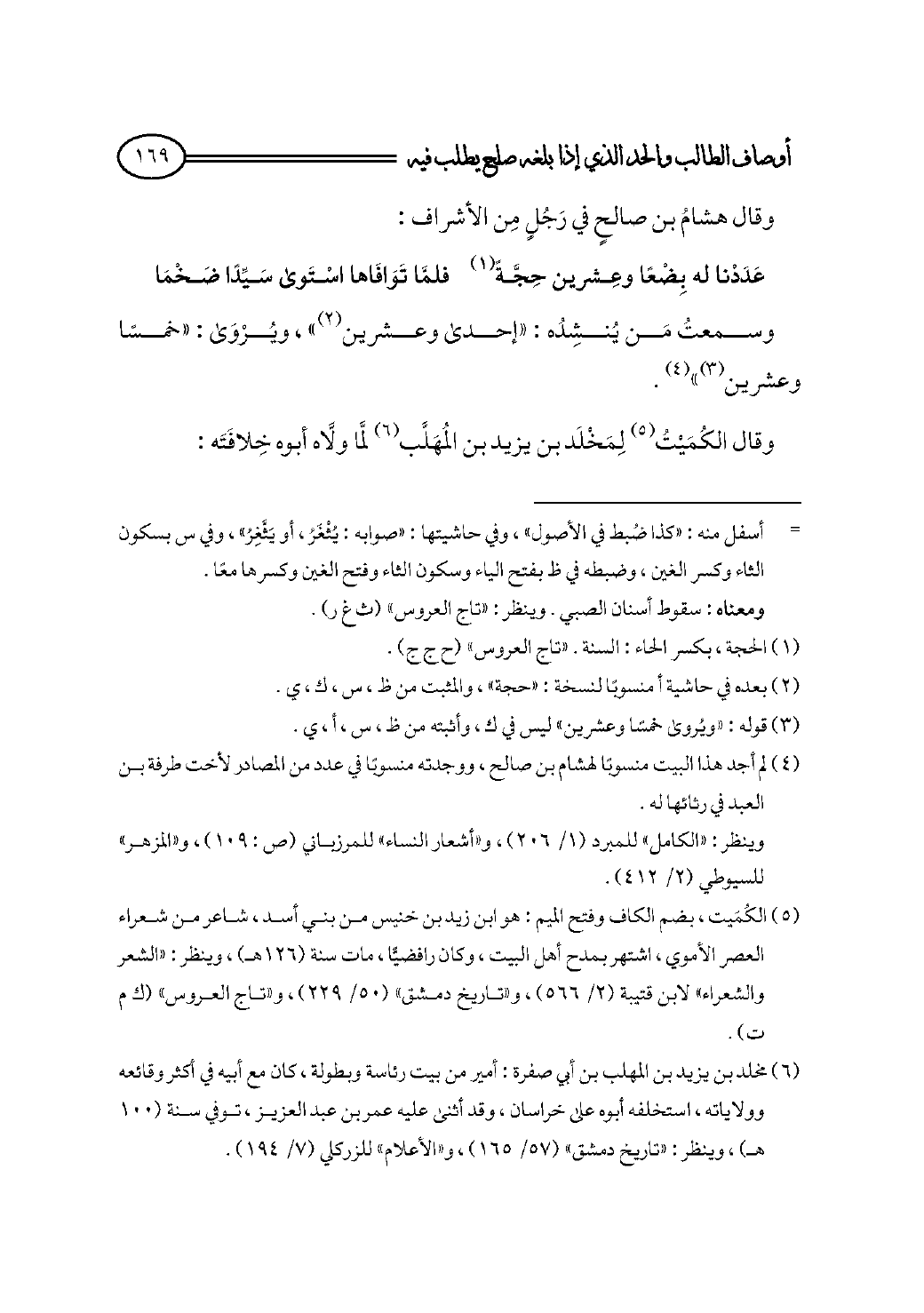 (¬٤) لم أجد هذا البيت منسوبًا لهشام بن صالح، ووجدته منسوبًا في عدد من المصادر لأخت طرفة بن العبد في رثائها له.
