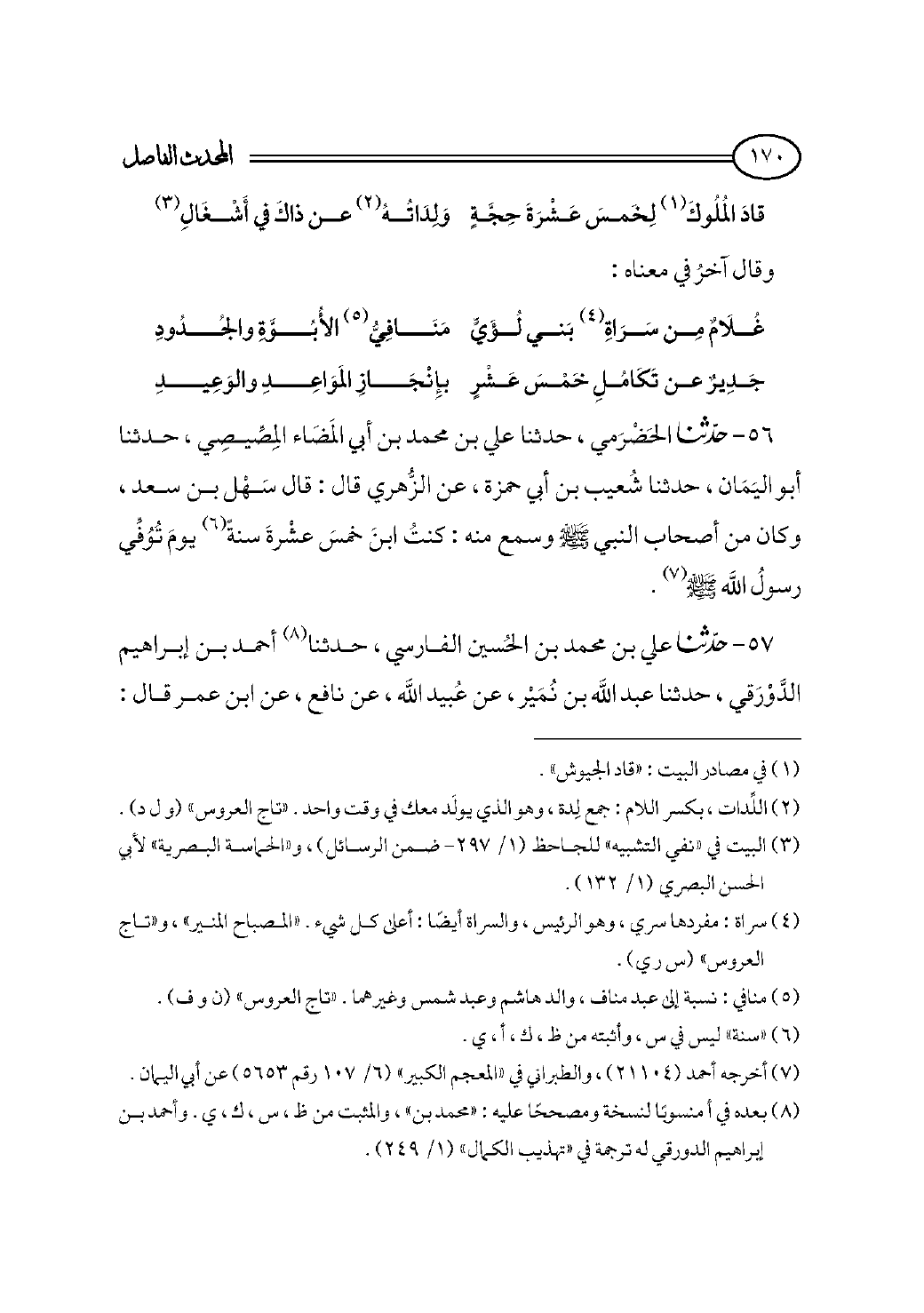غُلَامٌ مِن سَرَاةِ (¬٤) بَني لُؤَيٍّ ... مَنَافِيُّ (¬٥) الأُبُوَّةِ والجُدُود