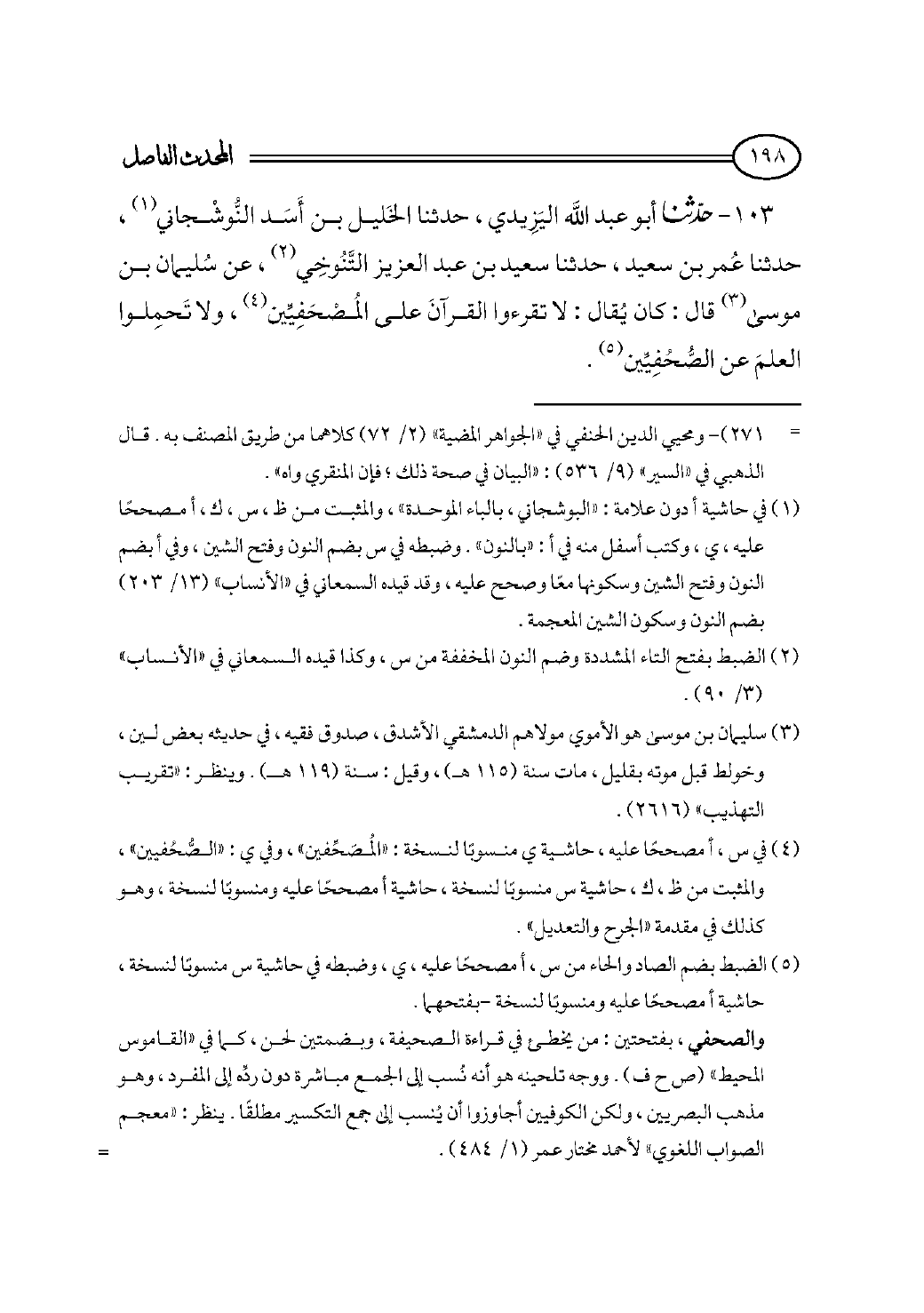 (¬٤) في س، أ مصححًا عليه، حاشية ي منسوبًا لنسخة: «المُصَحِّفين»، وفي ي: «الصُّحُفيين»، والمثبت من ظ، ك، حاشية س منسوبًا لنسخة، حاشية أ مصححًا عليه ومنسوبًا لنسخة، وهو كذلك في مقدمة «الجرح والتعديل».