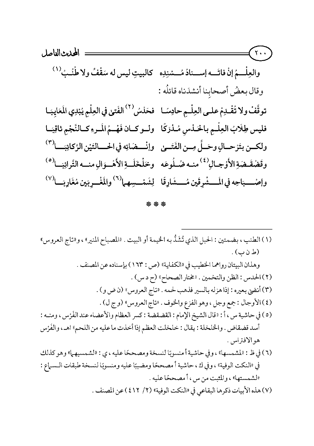والعِلْمُ إنْ فاتَه إسنادُ مُسْنِدِه ... كالبيتِ ليس له سَقْفٌ ولا طُنُبُ (¬١)