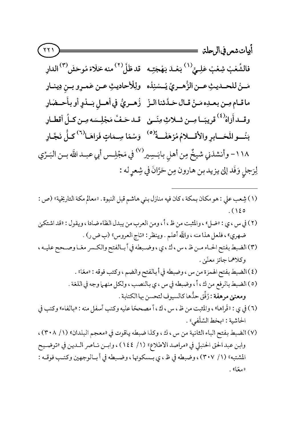 ١١٨ - وأنشدَني شيخٌ مِن أهلِ بابَسِير (¬٧) في مَجْلِس أبي عبد الله بن البَرِّي لِرَجلٍ وَفَد إلى يزيد بن هارون مِن حَرَّانَ في شِعرٍ له:
