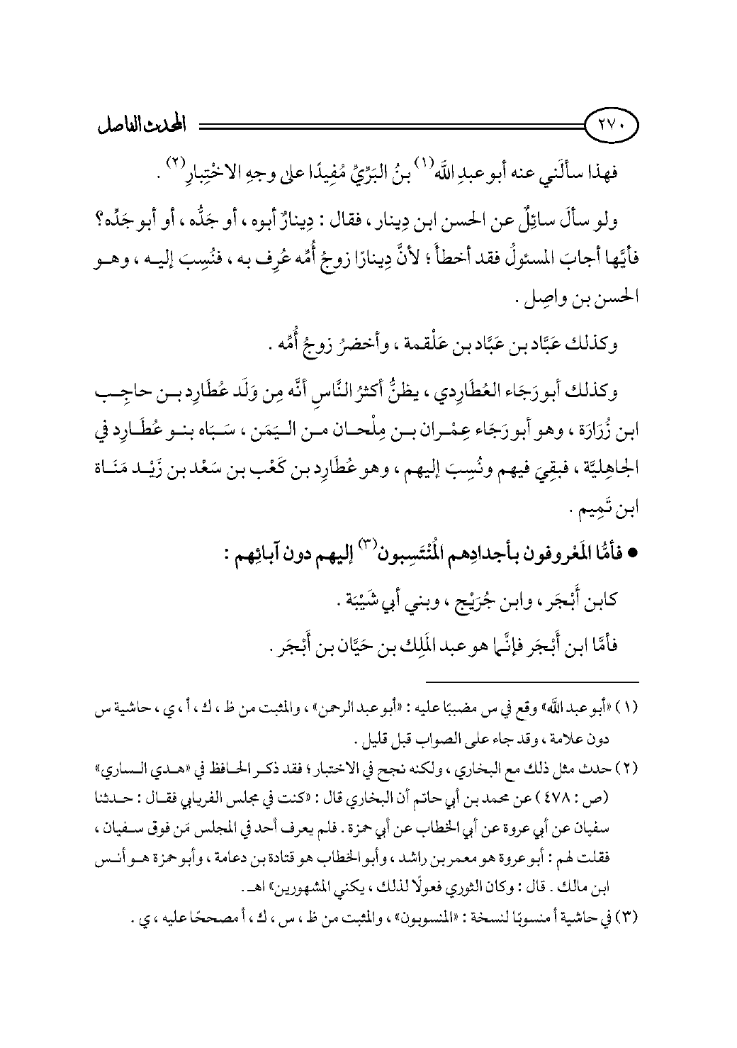 • فأمُّا المَعْروفون بأجدادِهم المُنْتَسِبون (¬٣) إليهم دون آبائِهم:
