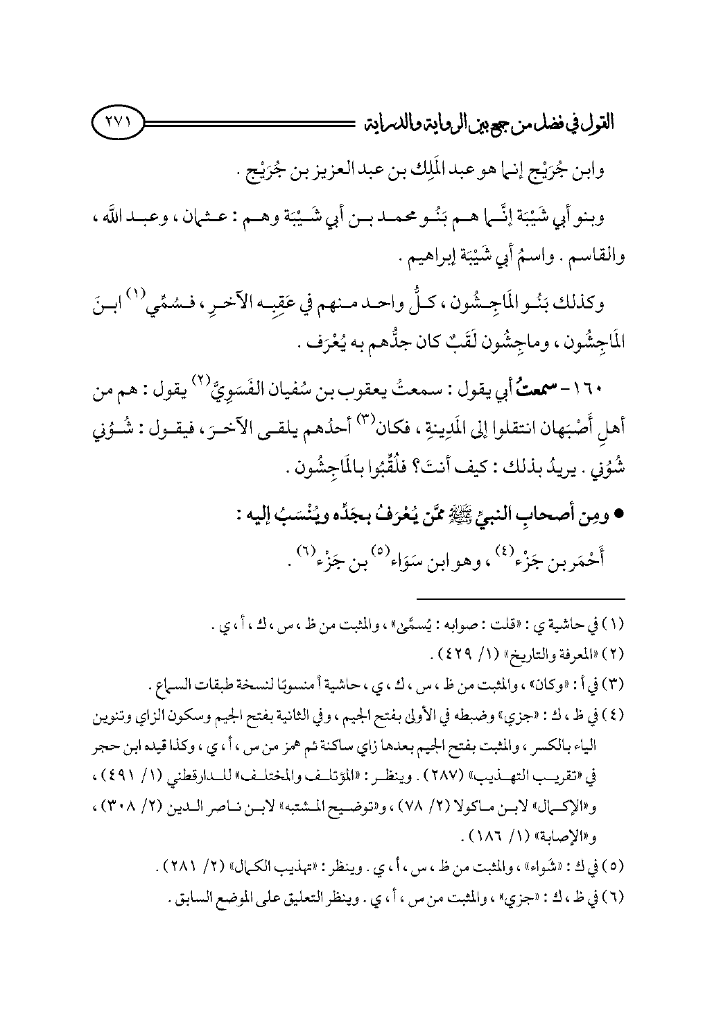 ١٦٠ - سمعتُ أبي يقول: سمعتُ يعقوب بن سُفيان الفَسَوِيَّ (¬٢) يقول: هم من أهلِ أَصْبَهان انتقلوا إلى المَدِينةِ، فكان (¬٣) أحدُهم يلقى الآخرَ، فيقول: شُوُني شُوُني. يريدُ بذلك: كيف أنتَ؟ فلُقِّبُوا بالمَاجِشُون.