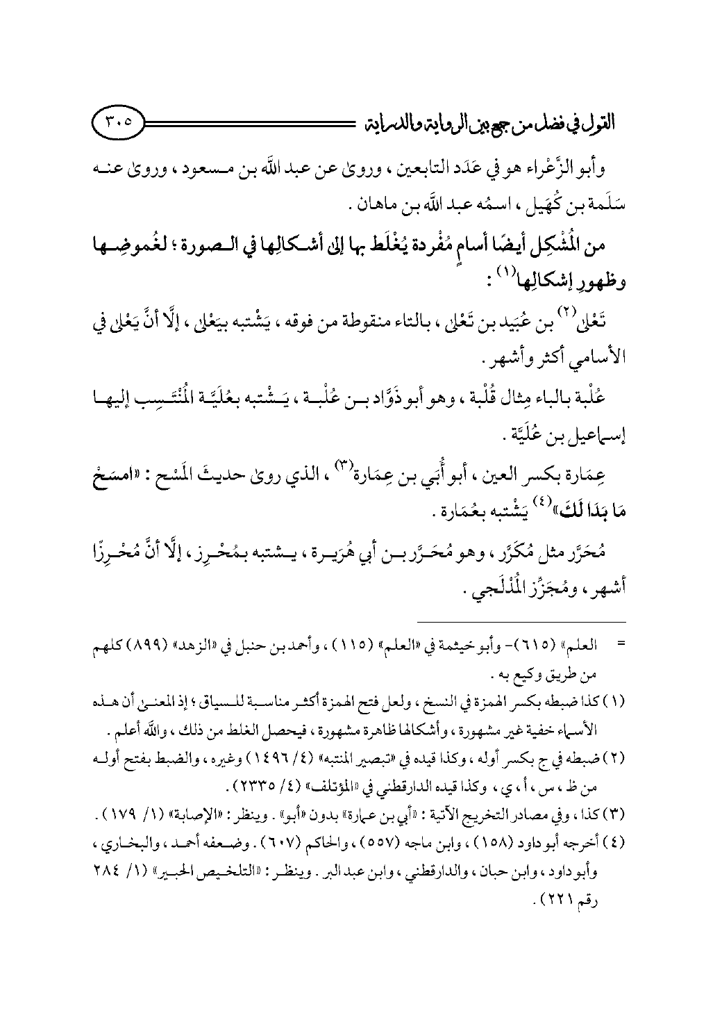 عِمَارة بكسر العين، أبو أُبَي بن عِمَارة (¬٣)، الذي روى حديثَ المَسْح: «امسَحْ مَا بَدَا لَكَ» (¬٤) يَشْتبه بعُمَارة.