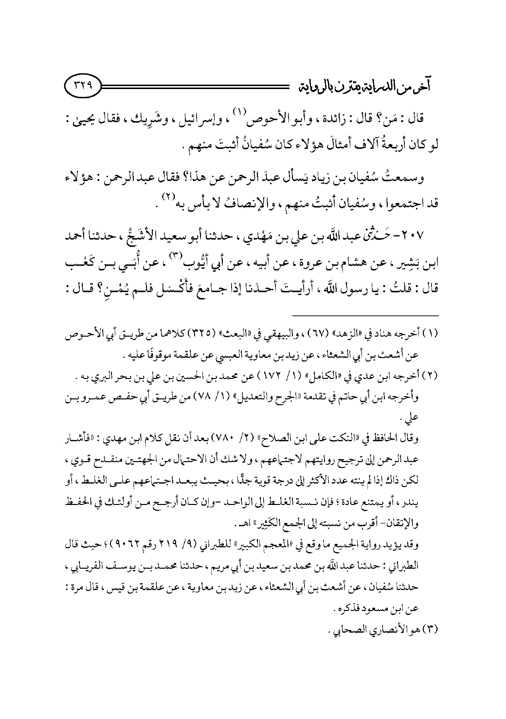 ٢٠٧ - حدثني عبد الله بن علي بن مَهْدي، حدثنا أبو سعيد الأشَجُّ، حدثنا أحمد ابن بَشِير، عن هشام بن عروة، عن أبيه، عن أبي أيُّوب (¬٣)، عن أُبَي بن كَعْب قال: قلتُ: يا رسول الله، أرأيتَ أحدَنا إذا جامعَ فأَكْسَل فلم يُمْنِ؟ قال:
