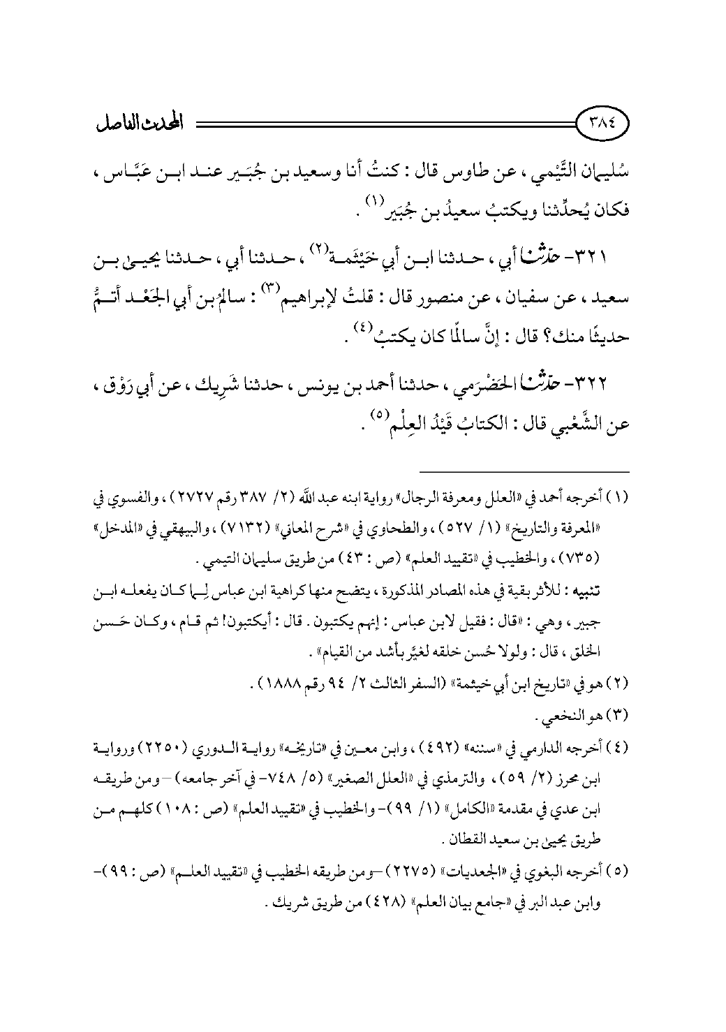٣٢٢ - حدثنا الحَضْرَمي، حدثنا أحمد بن يونس، حدثنا شَرِيك، عن أبي رَوْق، عن الشَّعْبي قال: الكتابُ قَيْدُ العِلْم (¬٥).