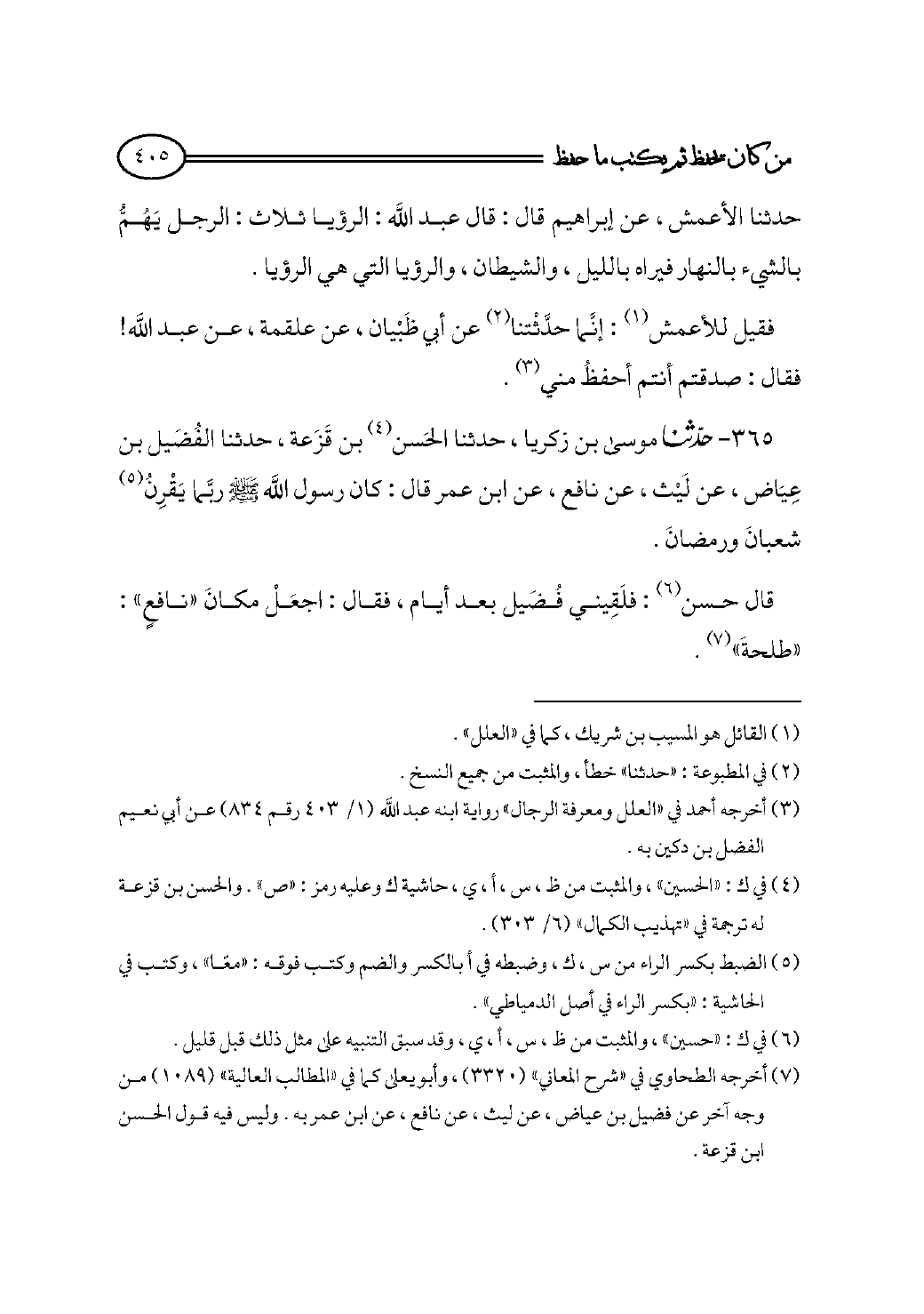 (¬٣) أخرجه أحمد في «العلل ومعرفة الرجال» رواية ابنه عبد الله (١/ ٤٠٣ رقم ٨٣٤) عن أبي نعيم الفضل بن دكين به.