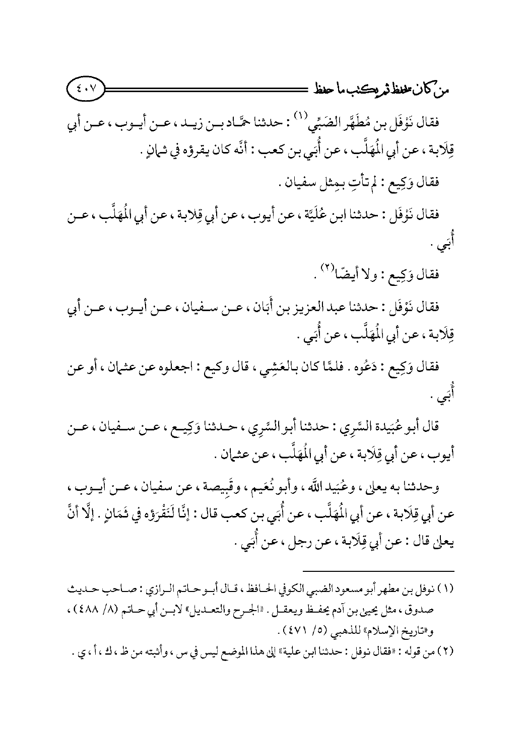 قال أبو عُبَيدة السَّرِي: حدثنا أبو السَّرِي، حدثنا وَكِيع، عن سفيان، عن أيوب، عن أبي قِلَابة، عن أبي المُهَلَّب، عن عثمان.