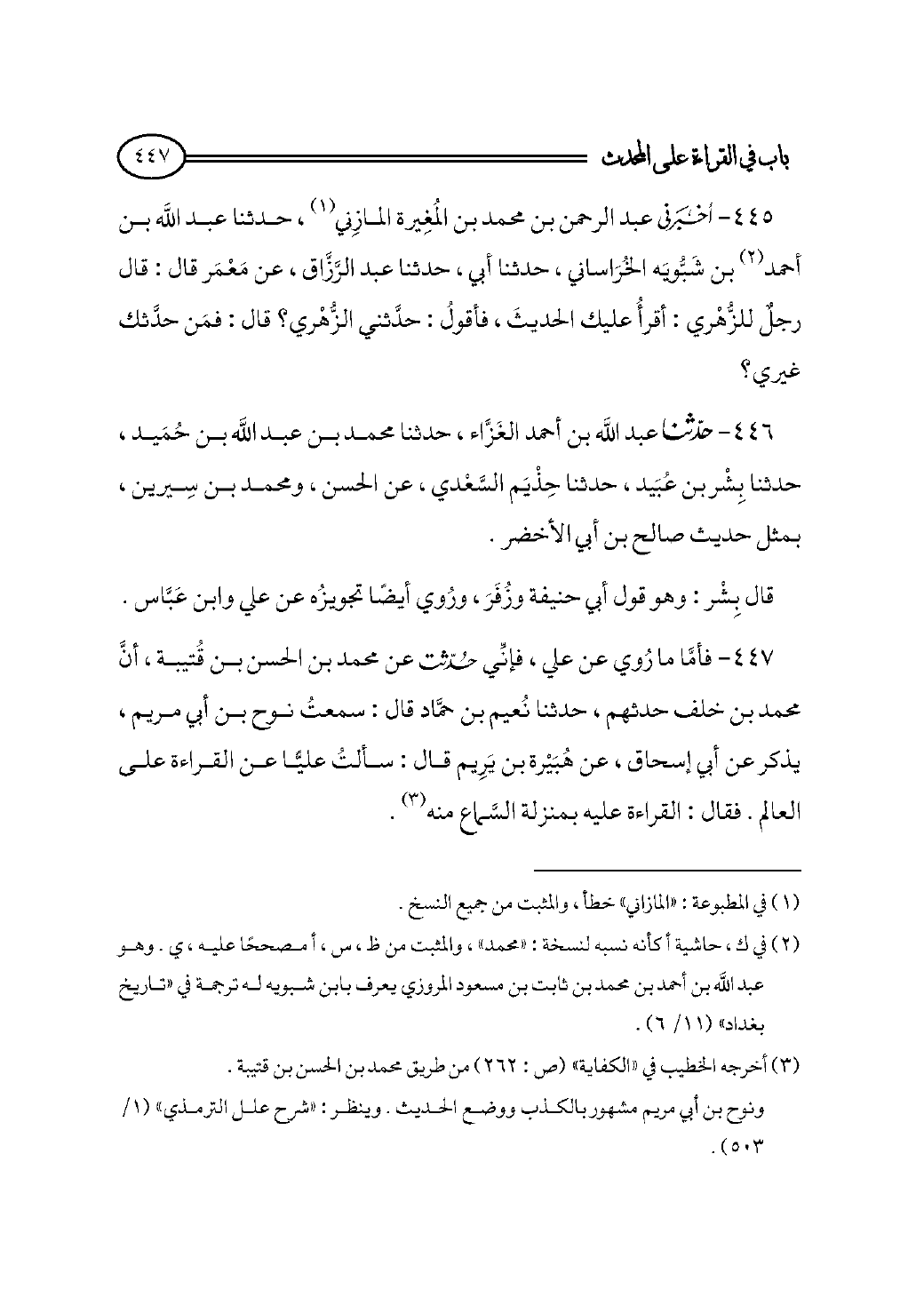 (¬٣) أخرجه الخطيب في «الكفاية» (ص: ٢٦٢) من طريق محمد بن الحسن بن قتيبة.