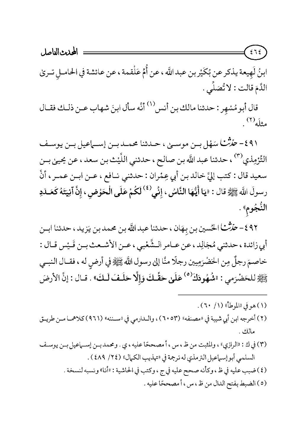 ٤٩١ - حدثنا سَهْل بن موسى، حدثنا محمد بن إسماعيل بن يوسف التِّرْمِذي (¬٣)، حدثنا عبد الله بن صالح، حدثني اللَّيْث بن سعد، عن يحيى بن سعيد قال: كتب إليَّ خالد بن أبي عِمْران: حدثني نافع، عن ابن عمر، أنَّ رسولَ الله - صلى الله عليه وسلم - قال: «يَا أَيُّهَا النَّاسُ، إِنِّي (¬٤) لَكُمْ عَلَى الْحَوْضِ، إِنَّ آنِيَتَهُ كَعَدَدِ النُّجُومِ».