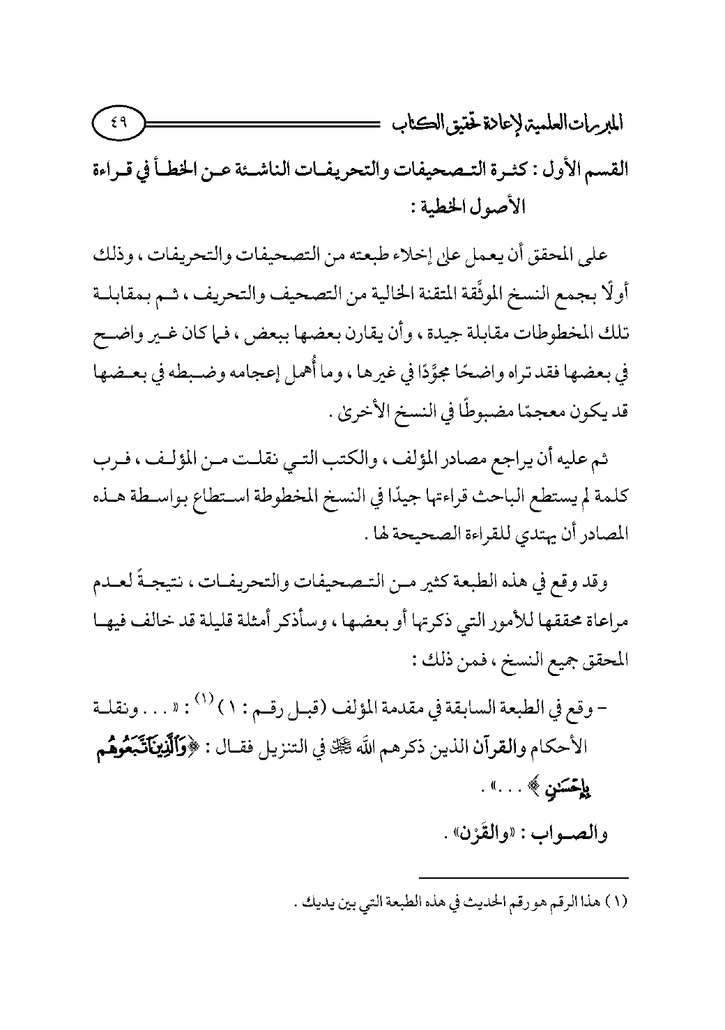 - وقع في الطبعة السابقة في مقدمة المؤلف (قبل رقم: ١) (¬١): « ... ونقلة الأحكام والقرآن الذين ذكرهم الله - عز وجل - في التنزيل فقال: {وَالَّذِينَ اتَّبَعُوهُمْ بِإِحْسَانٍ} ... ».