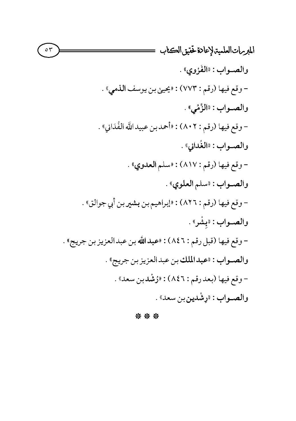 - وقع فيها (قبل رقم: ٨٤٦): «عبد الله بن عبد العزيز بن جريج».