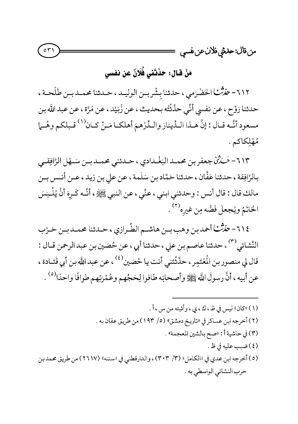 مَنْ قال: حدَّثني فُلَانٌ عن نفسي