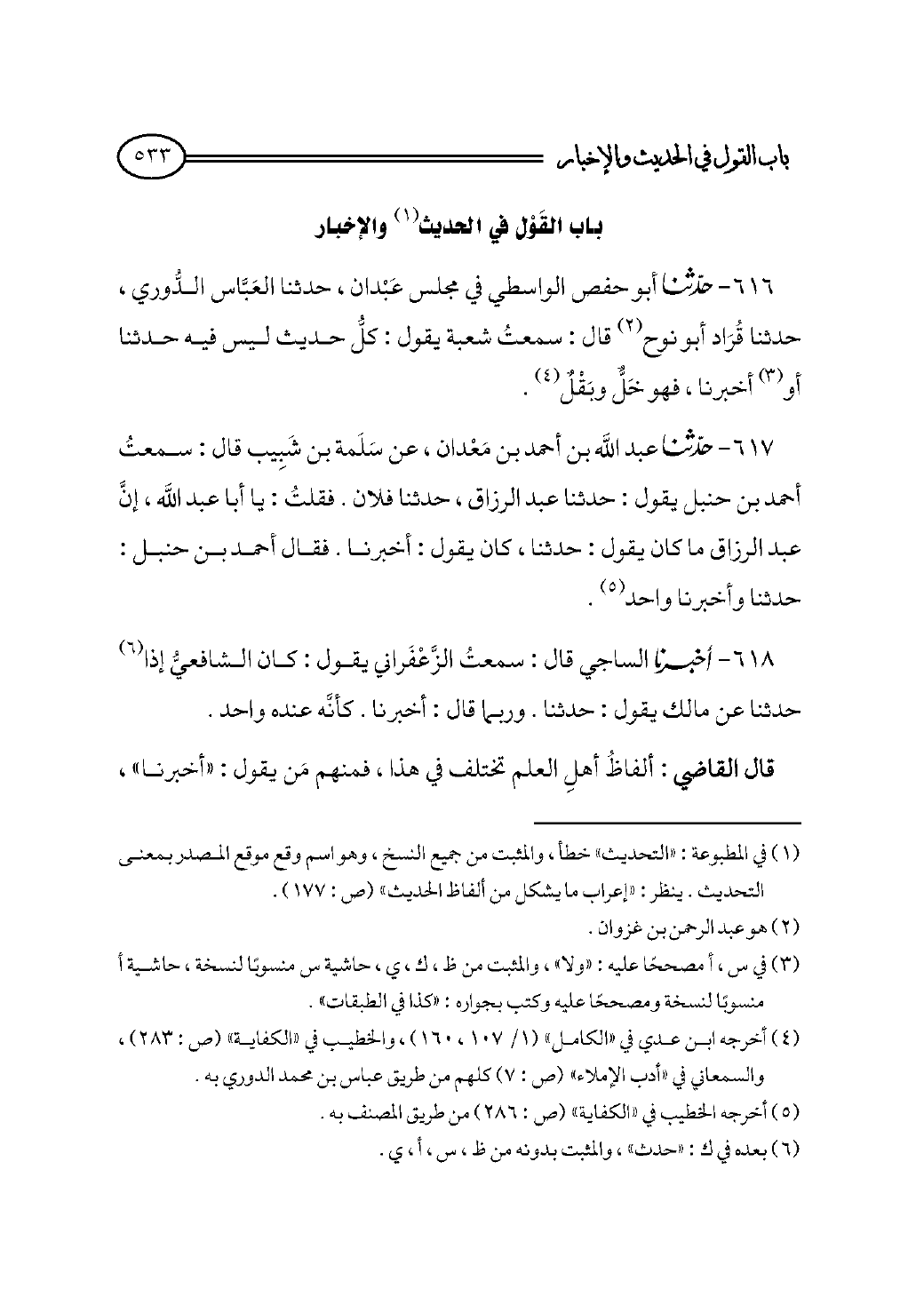 باب القَوْل في الحديث (¬١) والإخبار