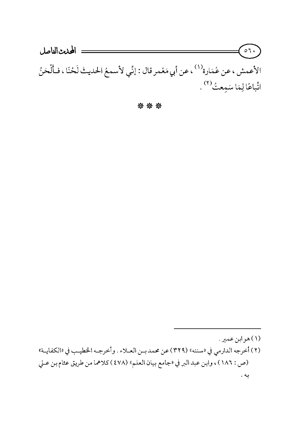 (¬٢) أخرجه الدارمي في «سننه» (٣٢٩) عن محمد بن العلاء. وأخرجه الخطيب في «الكفاية» (ص: ١٨٦)، وابن عبد البر في «جامع بيان العلم» (٤٧٨) كلاهما من طريق عثام بن علي به.