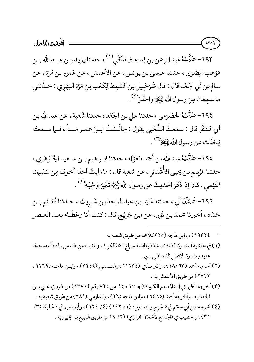 (¬٣) أخرجه الطبراني في «المعجم الكبير» (جـ ١٣، ١٤ ص: ٧٢ رقم ١٣٧٠٤) من طريق علي بن الجعد به. وأخرجه أحمد (٦٤٦٥)، وابن ماجه (٢٦)، والدارمي (٢٨١) من طريق شعبة به.