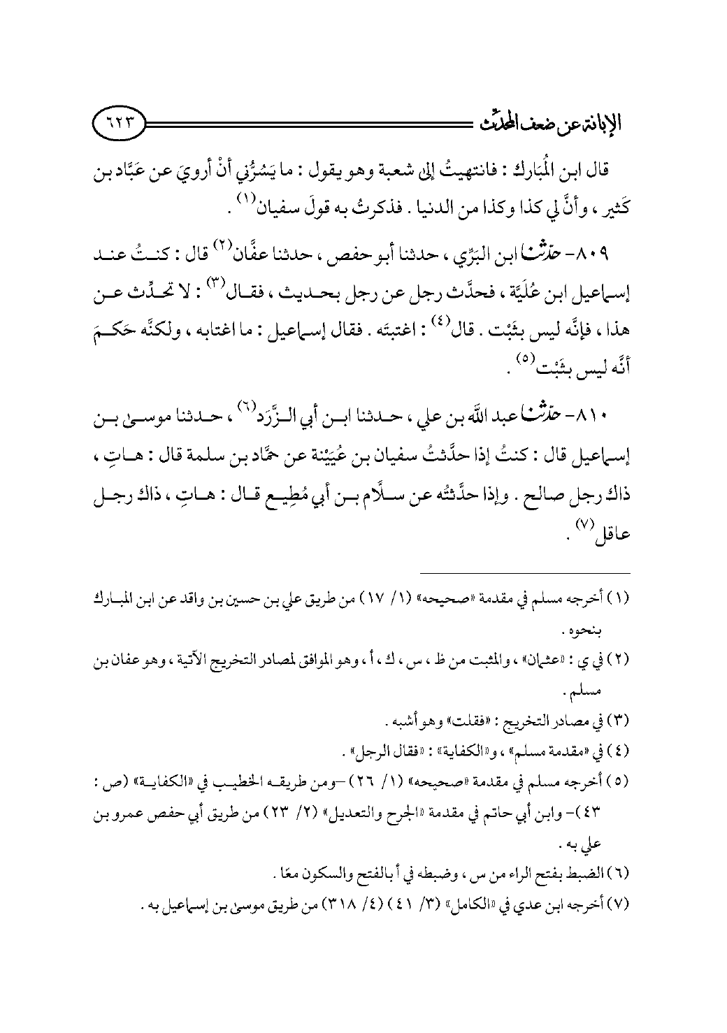 (¬٥) أخرجه مسلم في مقدمة «صحيحه» (١/ ٢٦) -ومن طريقه الخطيب في «الكفاية» (ص: ٤٣) - وابن أبي حاتم في مقدمة «الجرح والتعديل» (٢/ ٢٣) من طريق أبي حفص عمرو بن علي به.