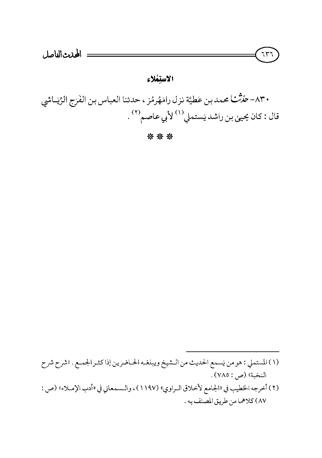 (¬٢) أخرجه الخطيب في «الجامع لأخلاق الراوي» (١١٩٧)، والسمعاني في «أدب الإملاء» (ص: ٨٧) كلاهما من طريق المصنف به.