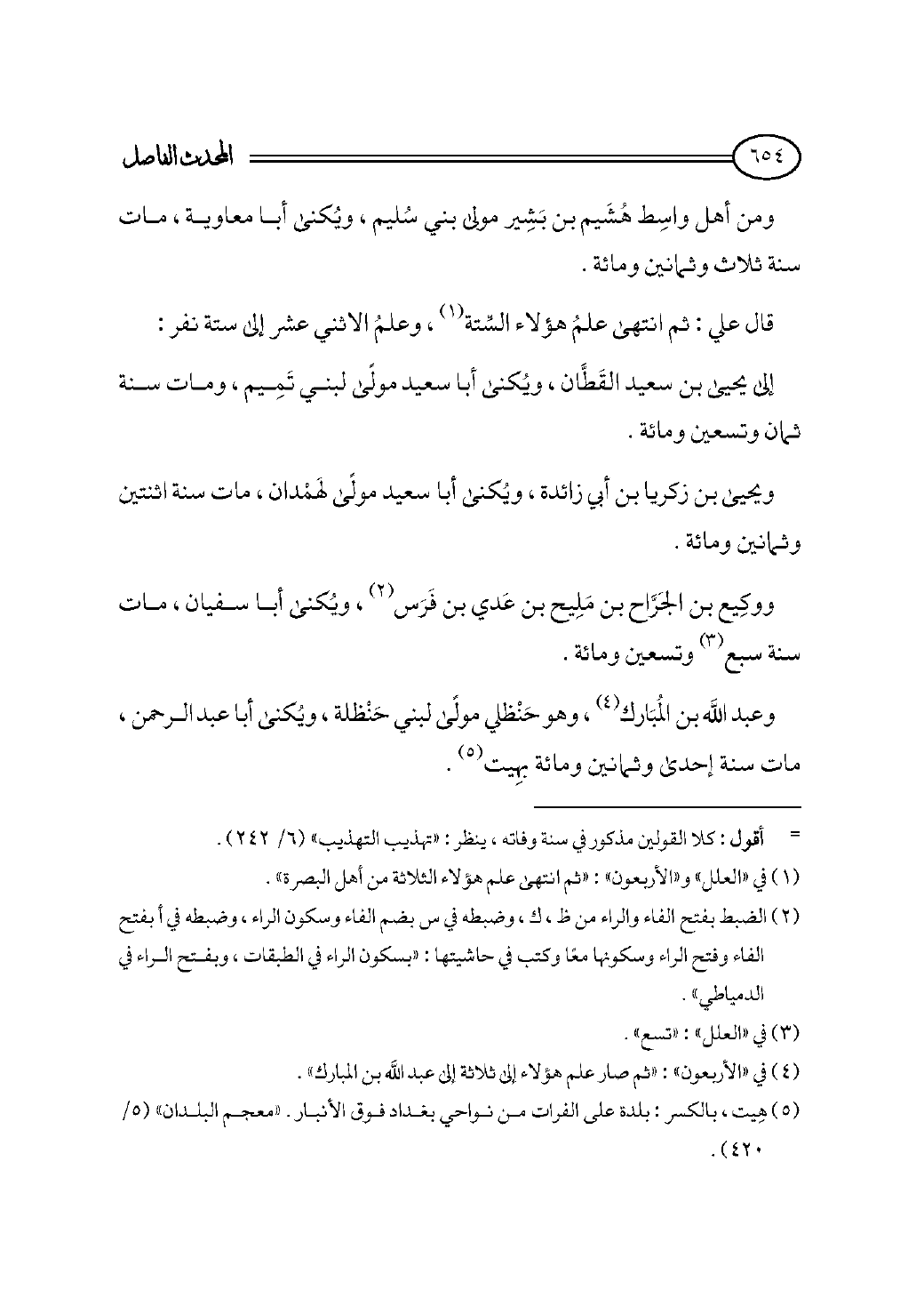 ومن أهل واسِط هُشَيم بن بَشِير مولى بني سُليم، ويُكنى أبا معاوية، مات سنة ثلاث وثمانين ومائة.