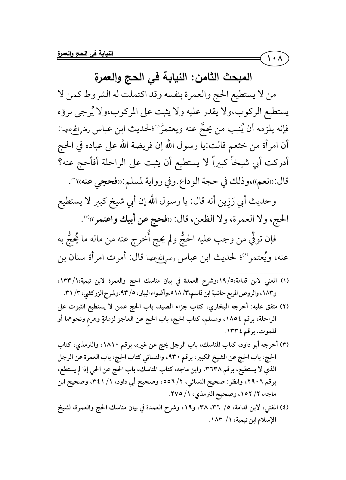 (¬1) المغني لابن قدامة،5/ 19،وشرح العمدة في بيان مناسك الحج والعمرة لابن تيمية،1/ 133،