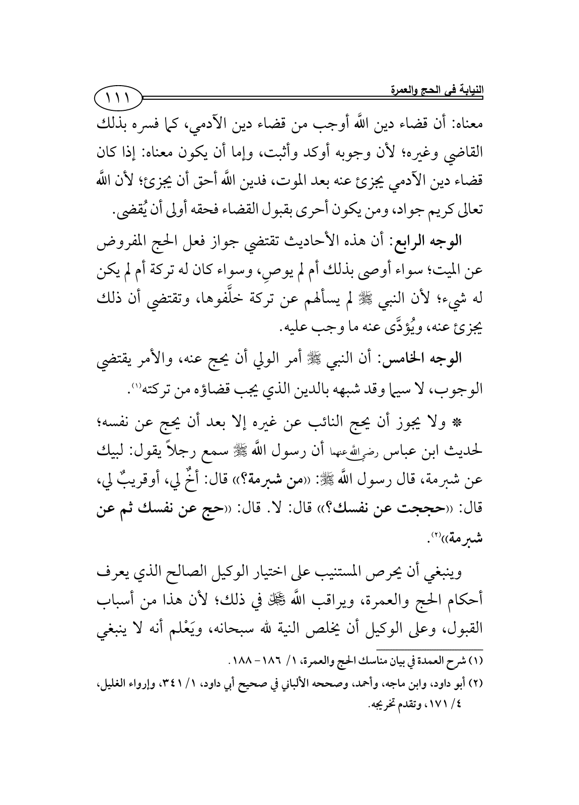 (¬1) شرح العمدة في بيان مناسك الحج والعمرة، 1/ 186 - 188.
