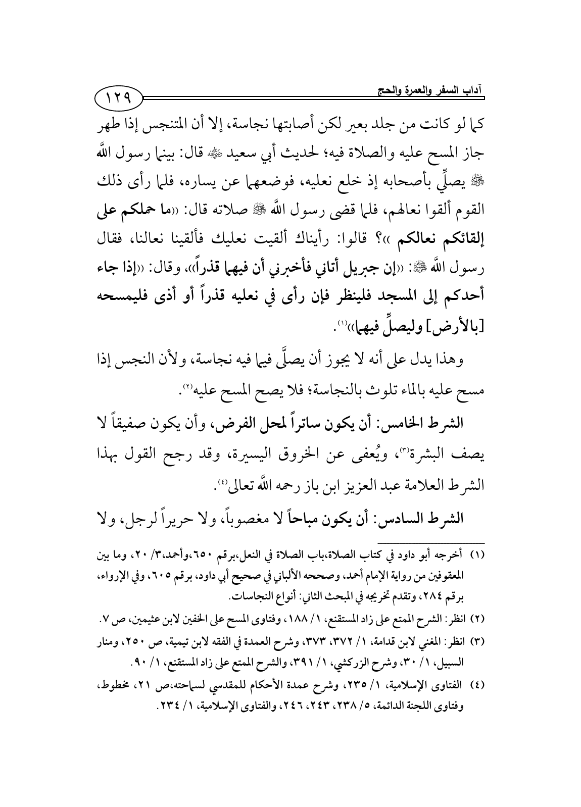 (¬3) انظر: المغني لابن قدامة، 1/ 372، 373، وشرح العمدة في الفقه لابن تيمية، ص 250، ومنار السبيل، 1/ 30، وشرح الزركشي، 1/ 391، والشرح الممتع على زاد المستقنع، 1/ 90.