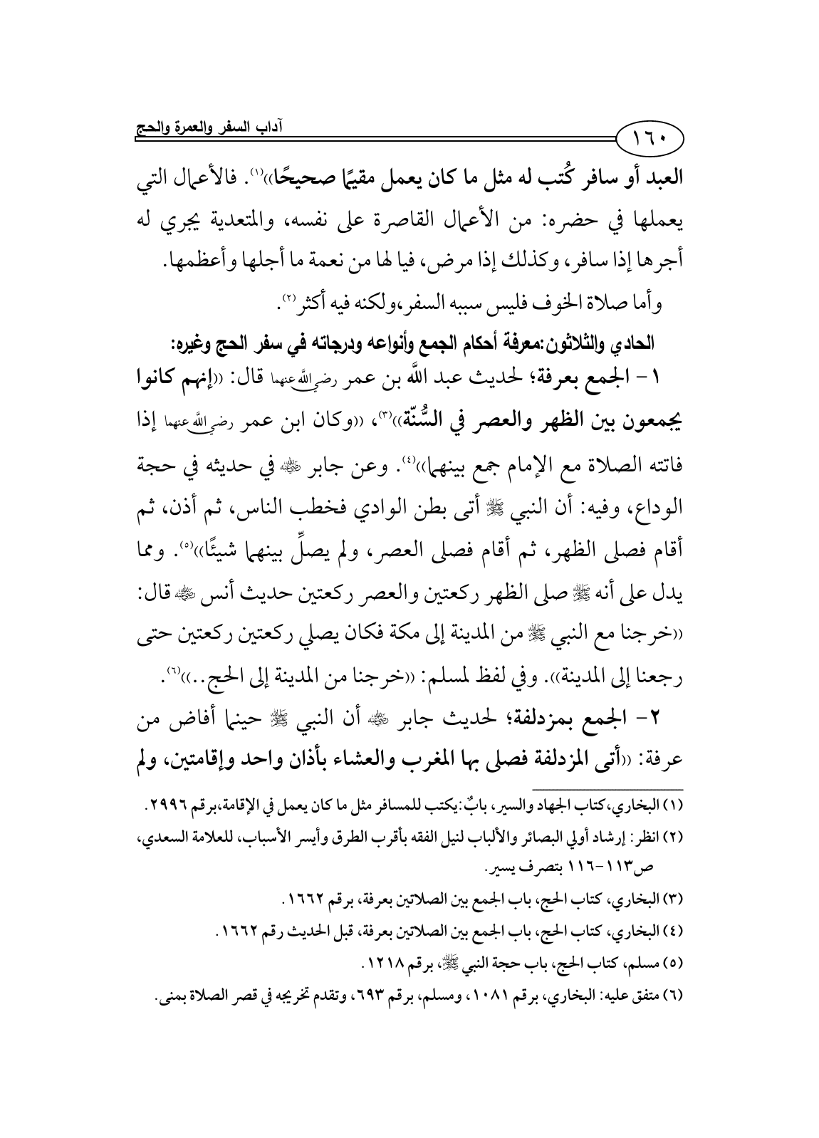 الحادي والثلاثون: معرفة أحكام الجمع وأنواعه ودرجاته في سفر الحج وغيره: