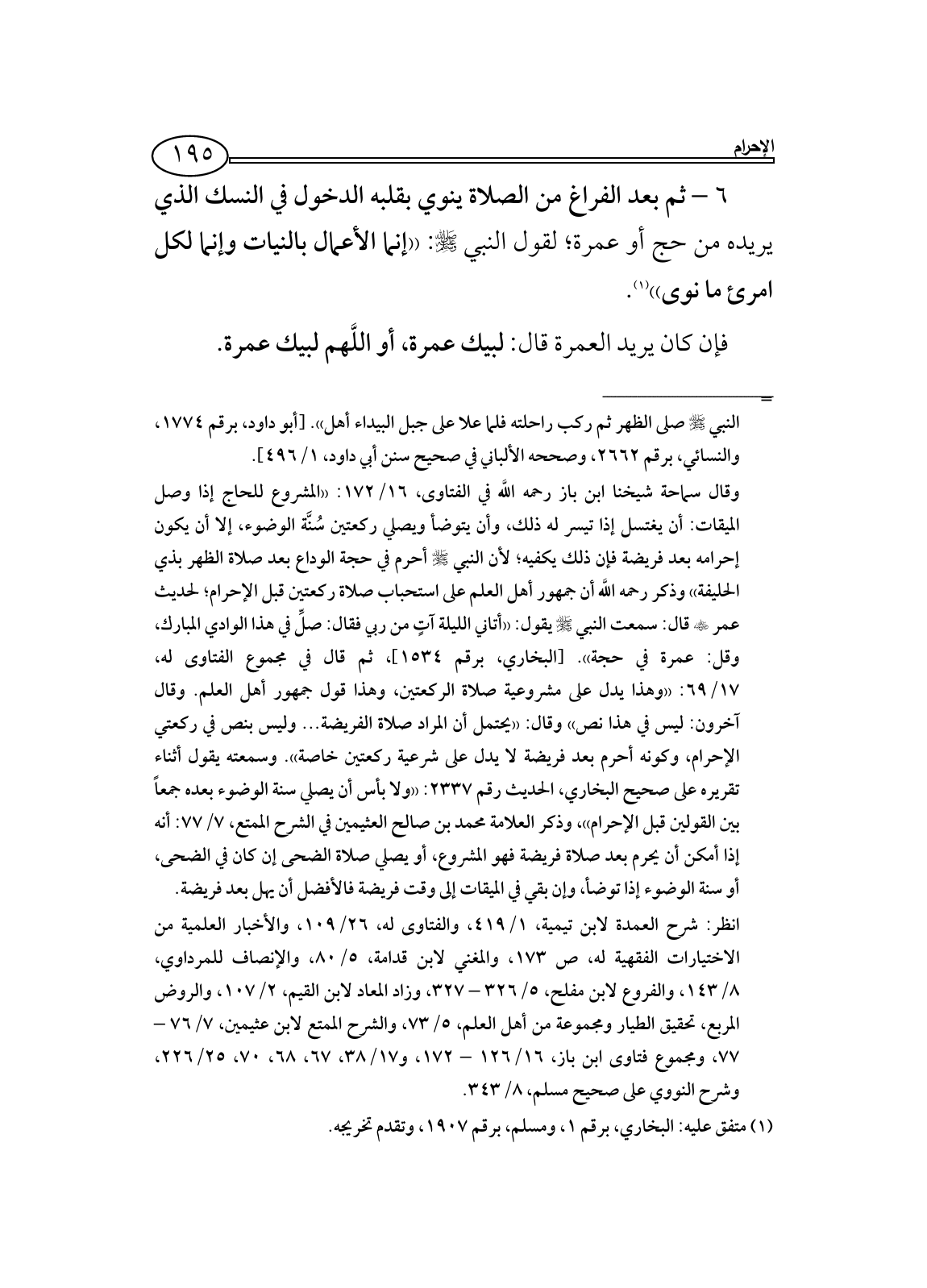 6 - ثم بعد الفراغ من الصلاة ينوي بقلبه الدخول في النسك الذي