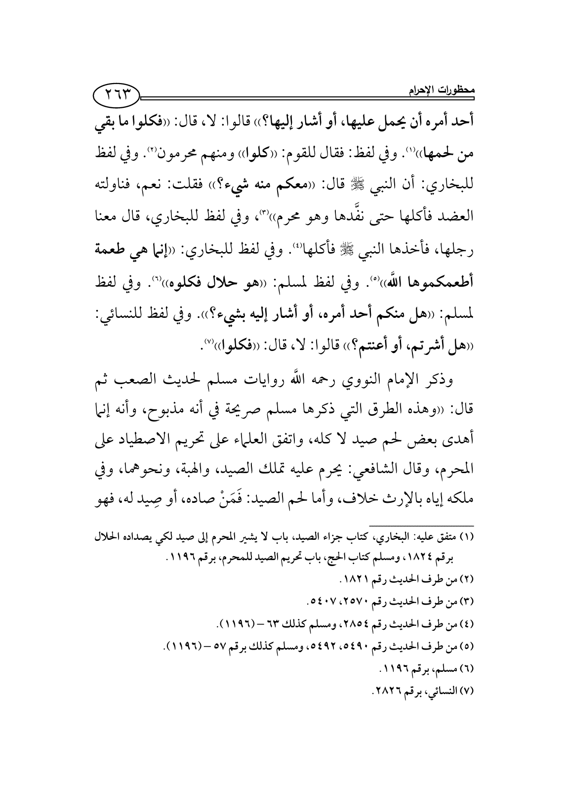 (¬1) متفق عليه: البخاري، كتاب جزاء الصيد، باب لا يشير المحرم إلى صيد لكي يصداده الحلال برقم 1824، ومسلم كتاب الحج، باب تحريم الصيد للمحرم، برقم 1196.