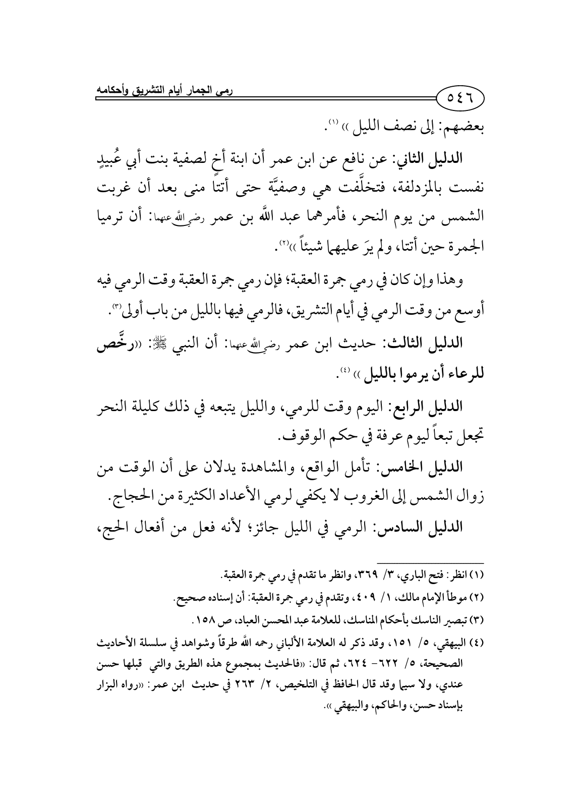 (¬3) تبصير الناسك بأحكام المناسك، للعلامة عبد المحسن العباد، ص 158.