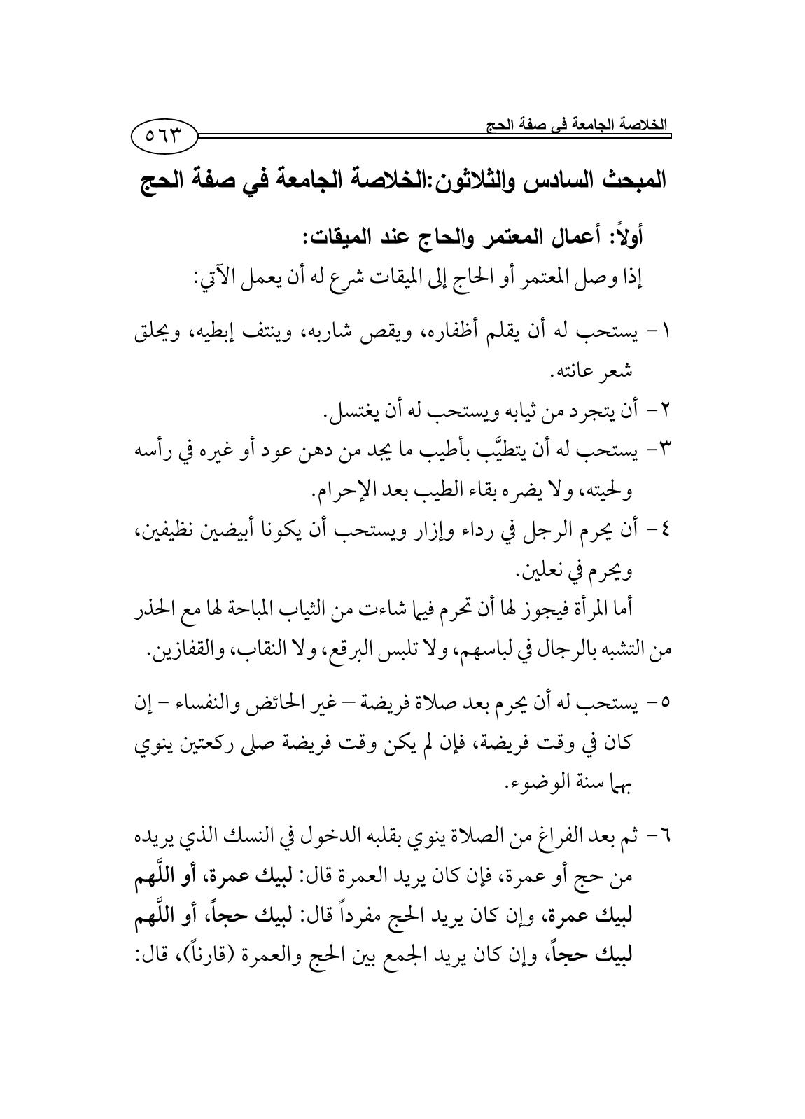 المبحث السادس والثلاثون: الخلاصة الجامعة في صفة الحج