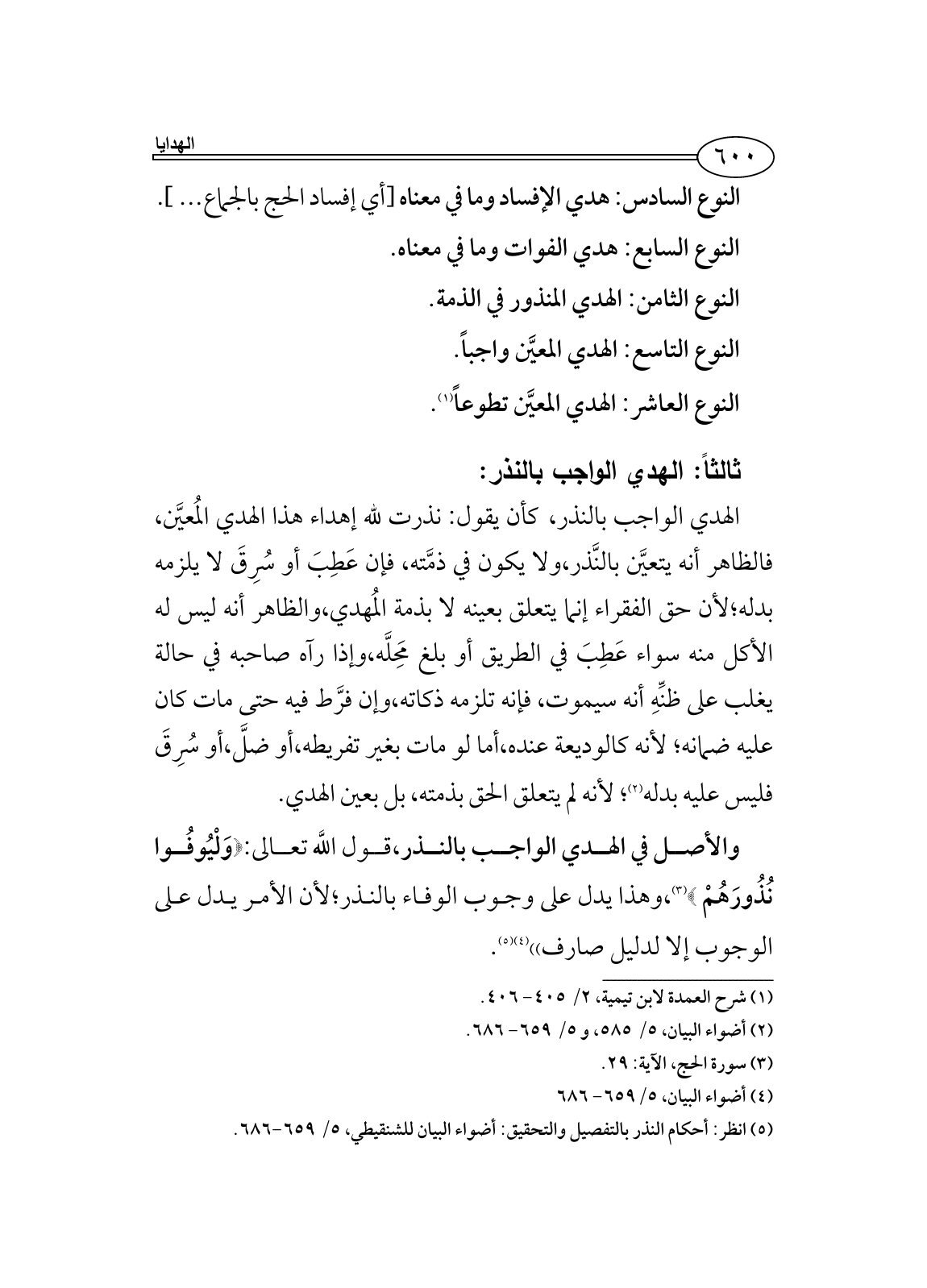 (¬5) انظر: أحكام النذر بالتفصيل والتحقيق: أضواء البيان للشنقيطي، 5/ 659 - 686.