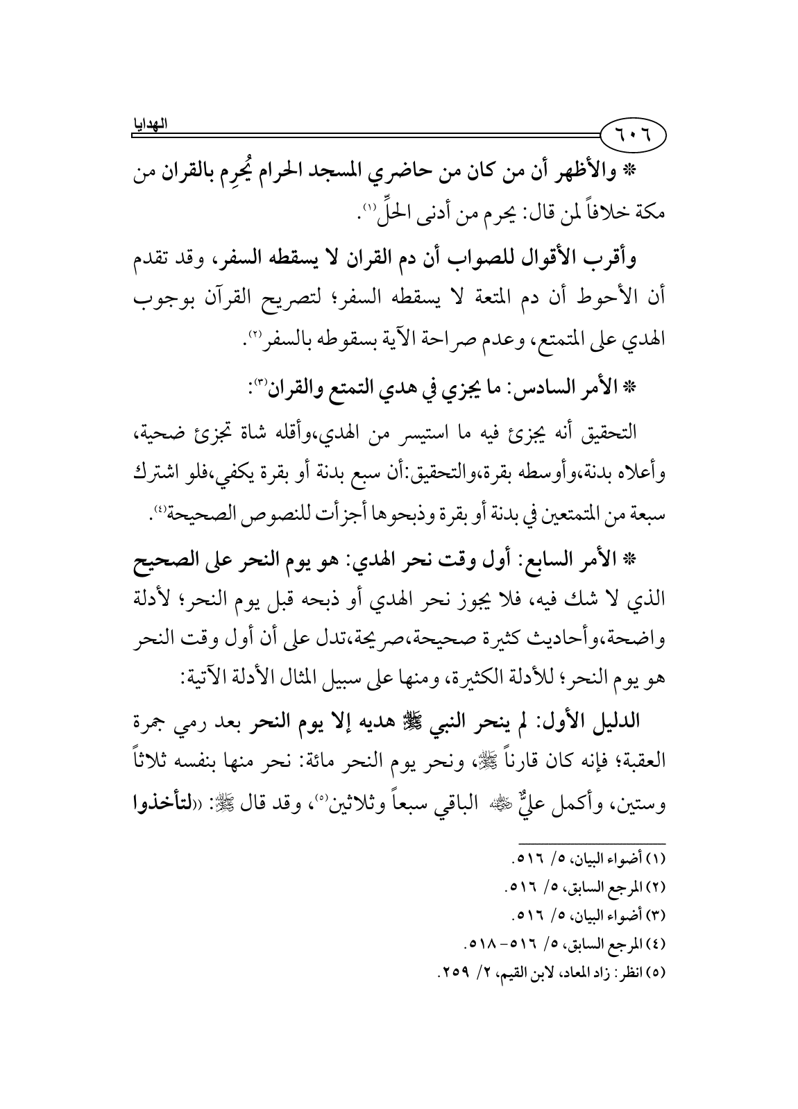 (¬5) انظر: زاد المعاد، لابن القيم، 2/ 259.