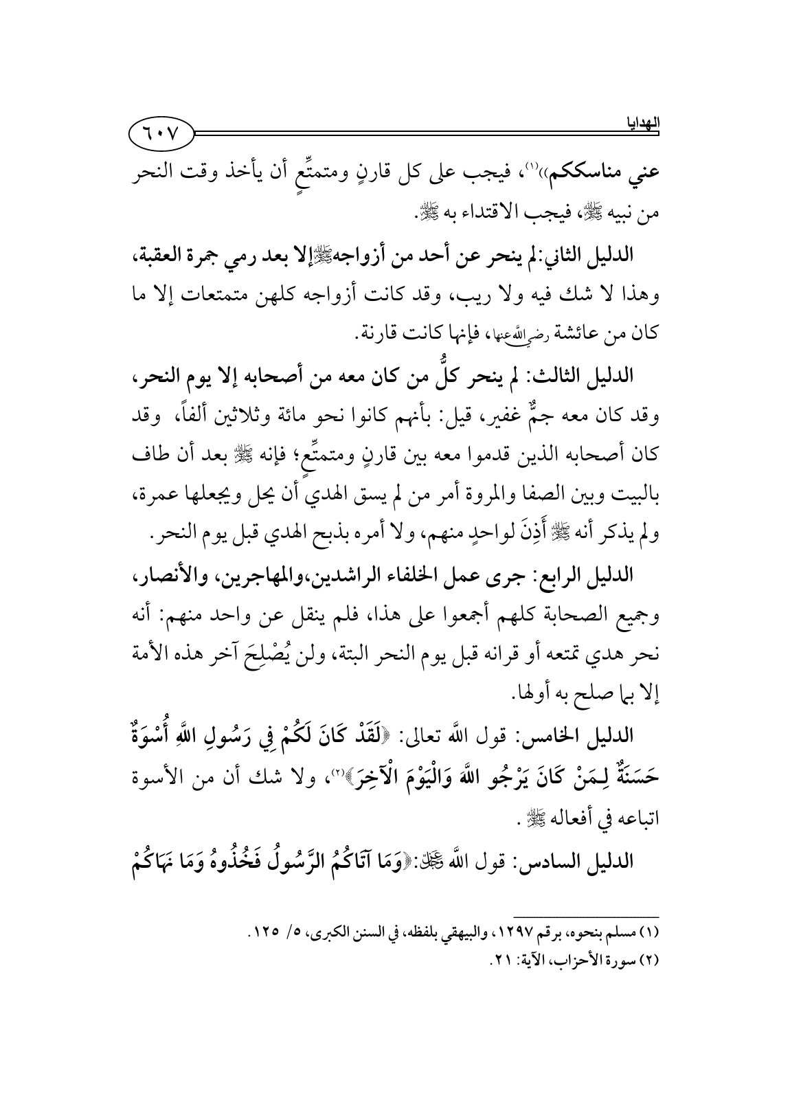 الدليل الخامس: قول اللَّه تعالى: {لَقَدْ كَانَ لَكُمْ فِي رَسُولِ اللَّهِ أُسْوَةٌ حَسَنَةٌ لِمَنْ كَانَ يَرْجُو اللَّهَ وَالْيَوْمَ الْآخِرَ} (¬2)، ولا شك أن من الأسوة اتباعه في أفعاله - صلى الله عليه وسلم -.
