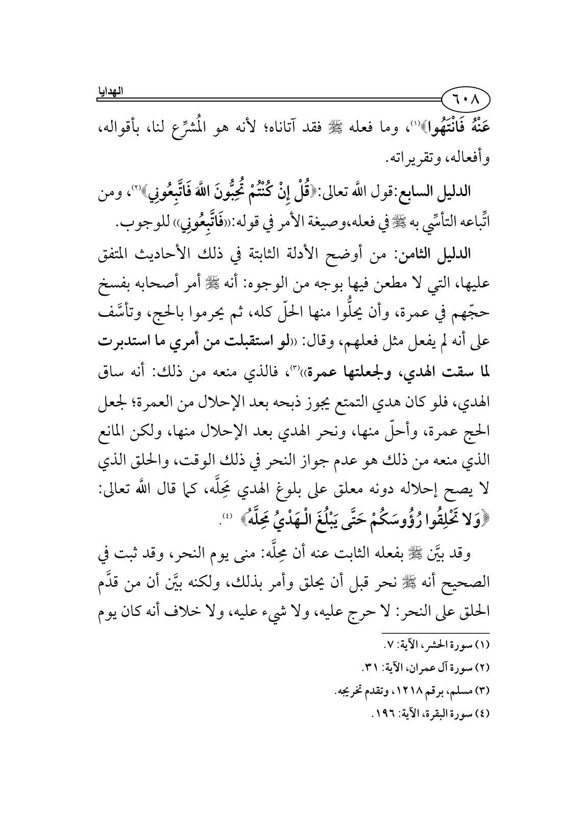 (¬4) سورة البقرة، الآية: 196.