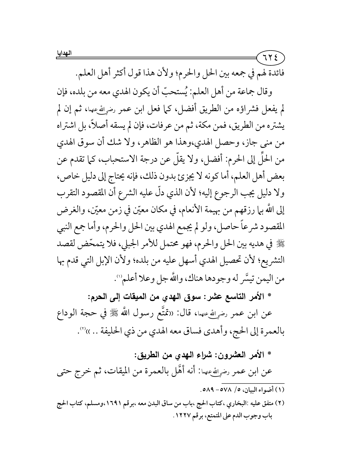 (¬2) متفق عليه: البخاري، كتاب الحج، باب من ساق البدن معه، برقم 1691،ومسلم، كتاب الحج باب وجوب الدم على المتمتع، برقم 1227.