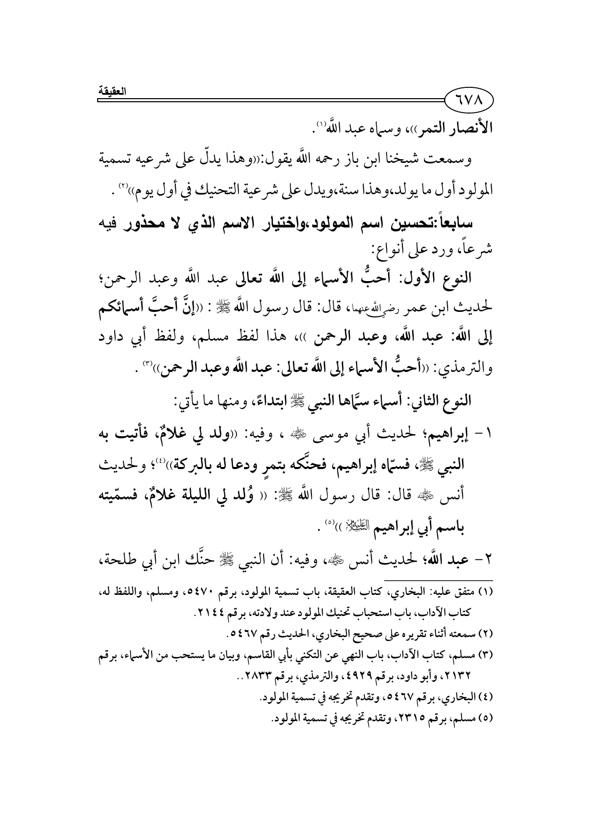 سابعاً: تحسين اسم المولود، واختيار الاسم الذي لا محذور فيه شرعاً، ورد على أنواع: