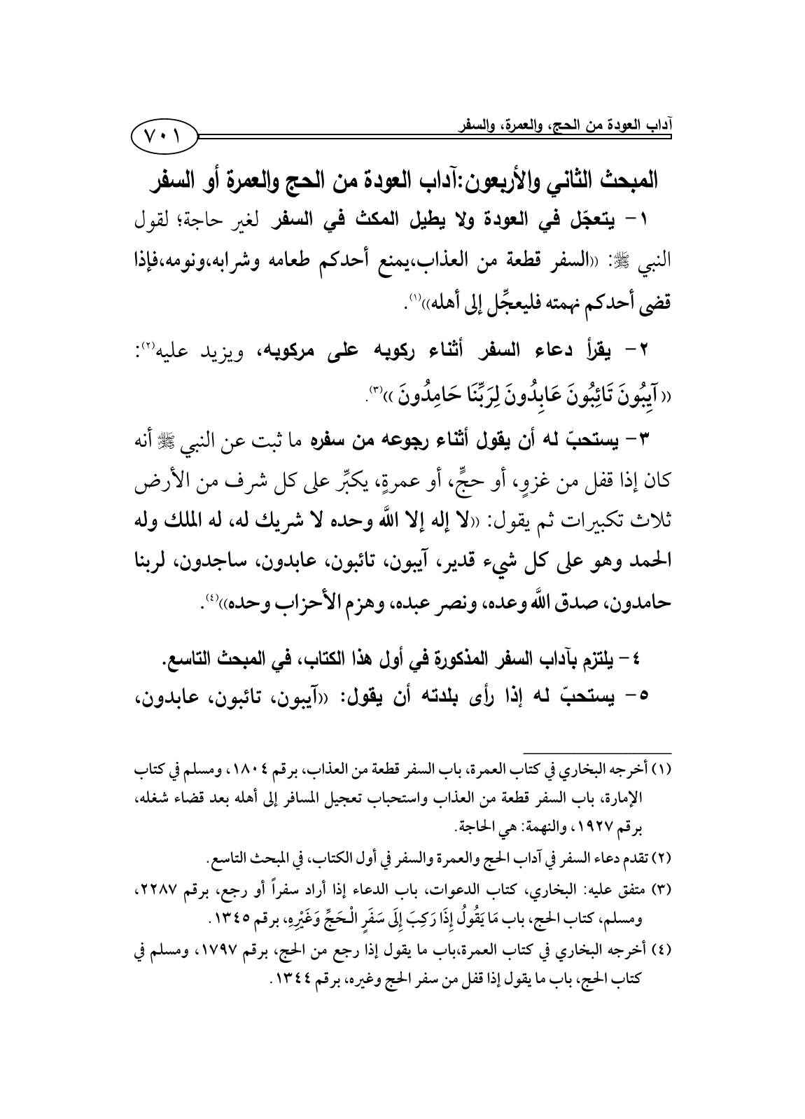المبحث الثاني والأربعون: آداب العودة من الحج والعمرة أو السفر