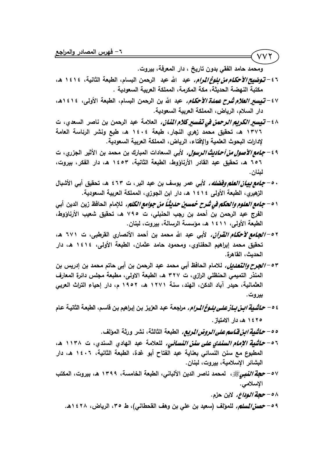 46 - توضيح الأحكام من بلوغ المرام، عبد اللَّه عبد الرحمن البسام، الطبعة الثانية، 1414 هـ، مكتبة النهضة الحديثة، مكة المكرمة، المملكة العربية السعودية.