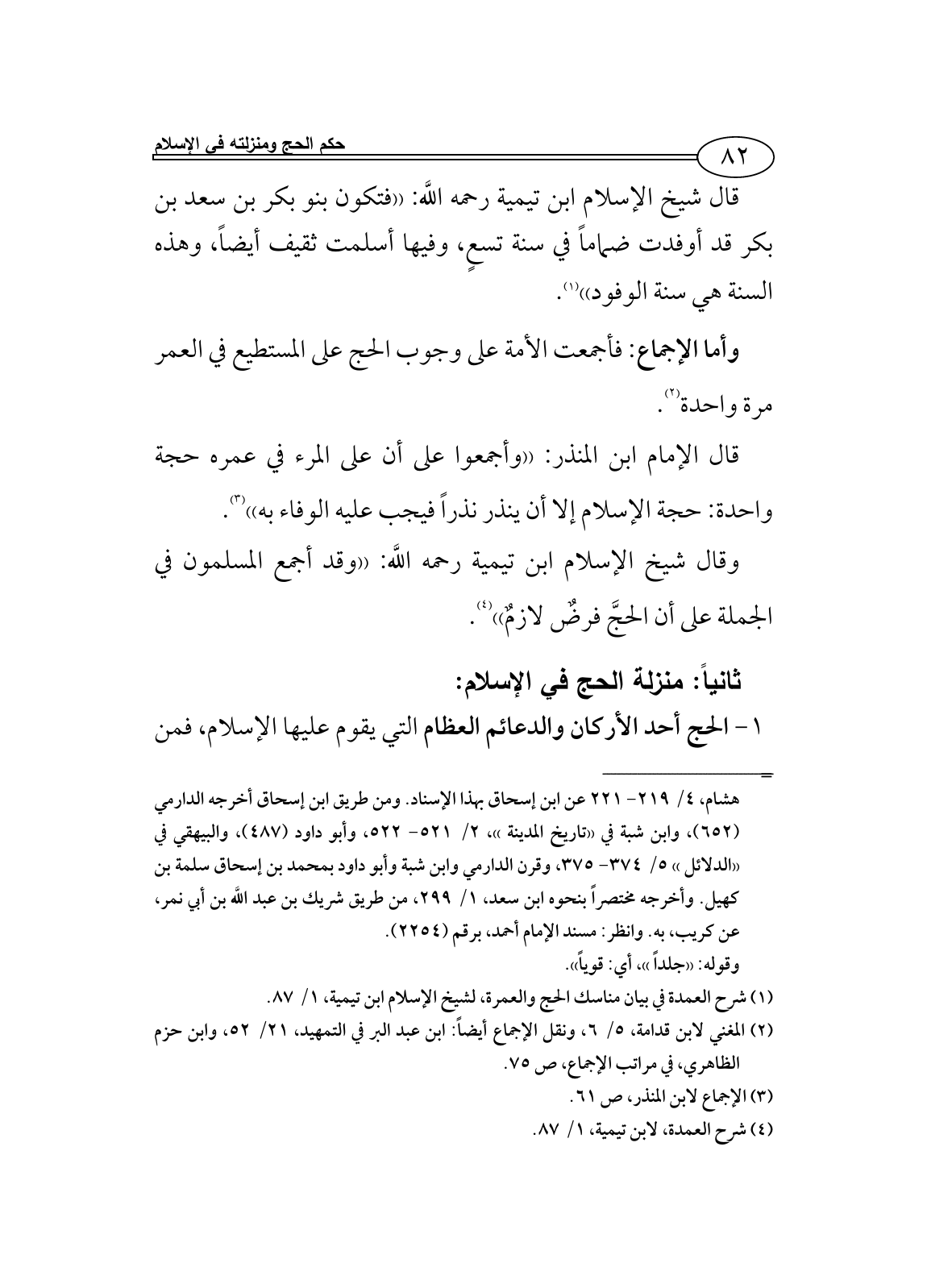 (¬2) المغني لابن قدامة، 5/ 6، ونقل الإجماع أيضاً: ابن عبد البر في التمهيد، 21/ 52، وابن حزم الظاهري، في مراتب الإجماع، ص 75.