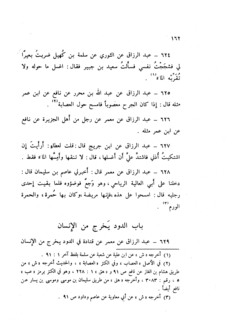 629 - عَبْدُ الرَّزَّاقِ، عَنْ مَعْمَرٍ، عَنْ قَتَادَةَ فِي الدُّودِ يَخْرُجُ مِنَ الْإِنْسَانِ مِثْلَ حَبِّ الْقَرْعِ قَالَ: «§لَيْسَ عَلَيْهِ مِنْهُ وُضُوءٌ»